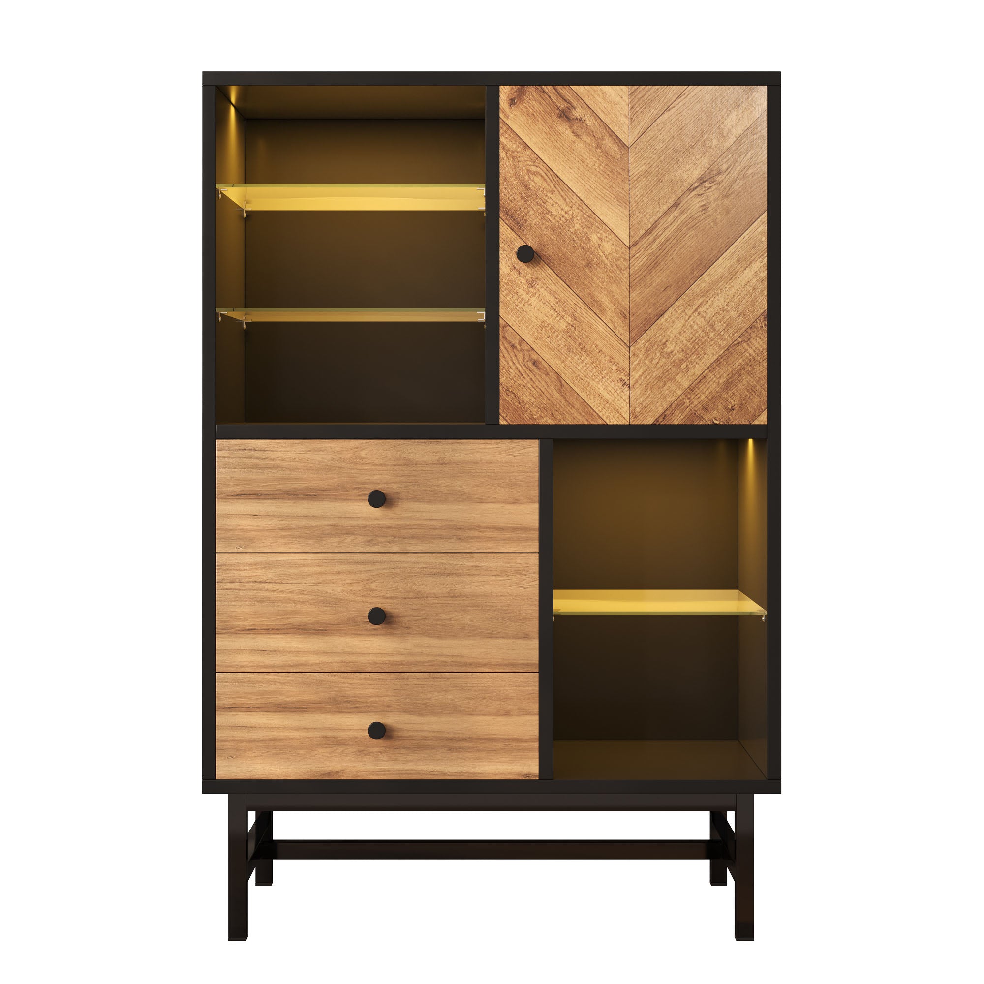 Crafted from high-quality materials, this display cabinet is durable and serves as a statement piece that reflects your refined taste. Its sophisticated design and practical functionality make it an indispensable living room companion, seamlessly combining style, organization, and ambiance to enhance your home.