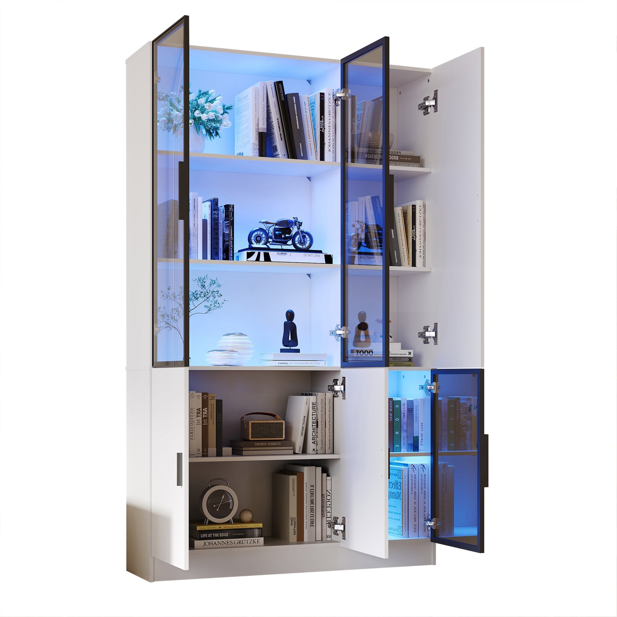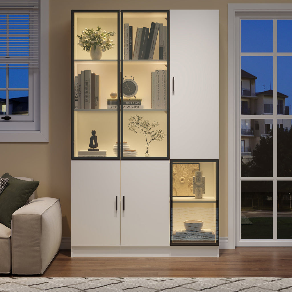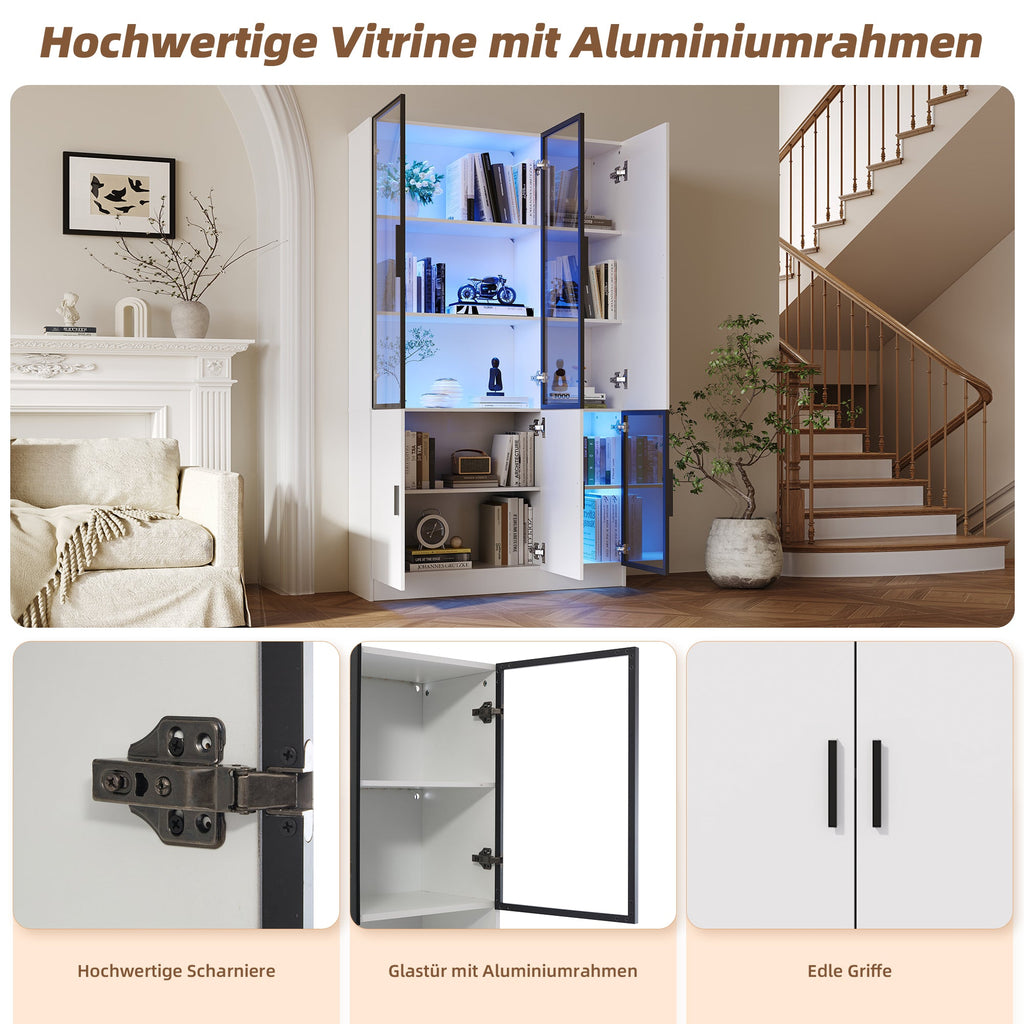 Display Case, 120x35x200cm Glass Cabinet with LED Lights, Multi-Storage Bookcase, Aluminum Frame