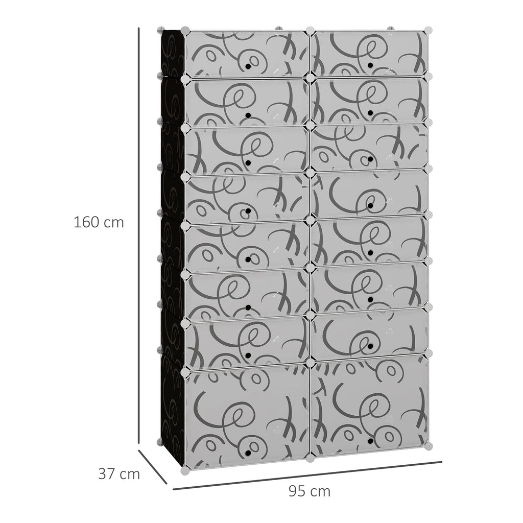 DIY Shoe Cabinet, 16 Compartments, Modular Wardrobe, PP Black + White