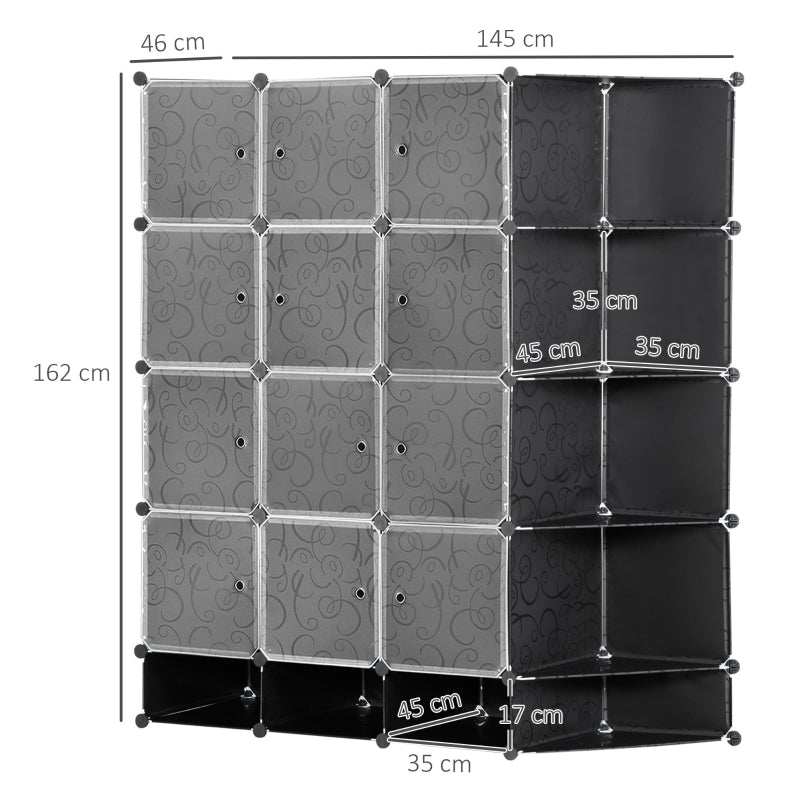DIY Wardrobe Shelving System, 16 Compartments, 2 Rods, Black
