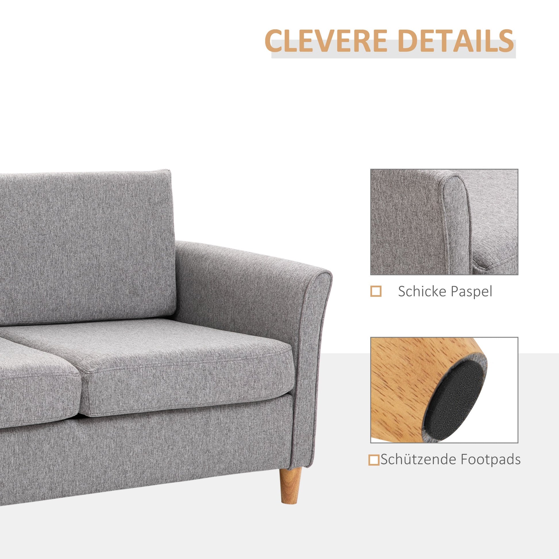 Double Sofa, Removable Cushions, Linen Light Grey