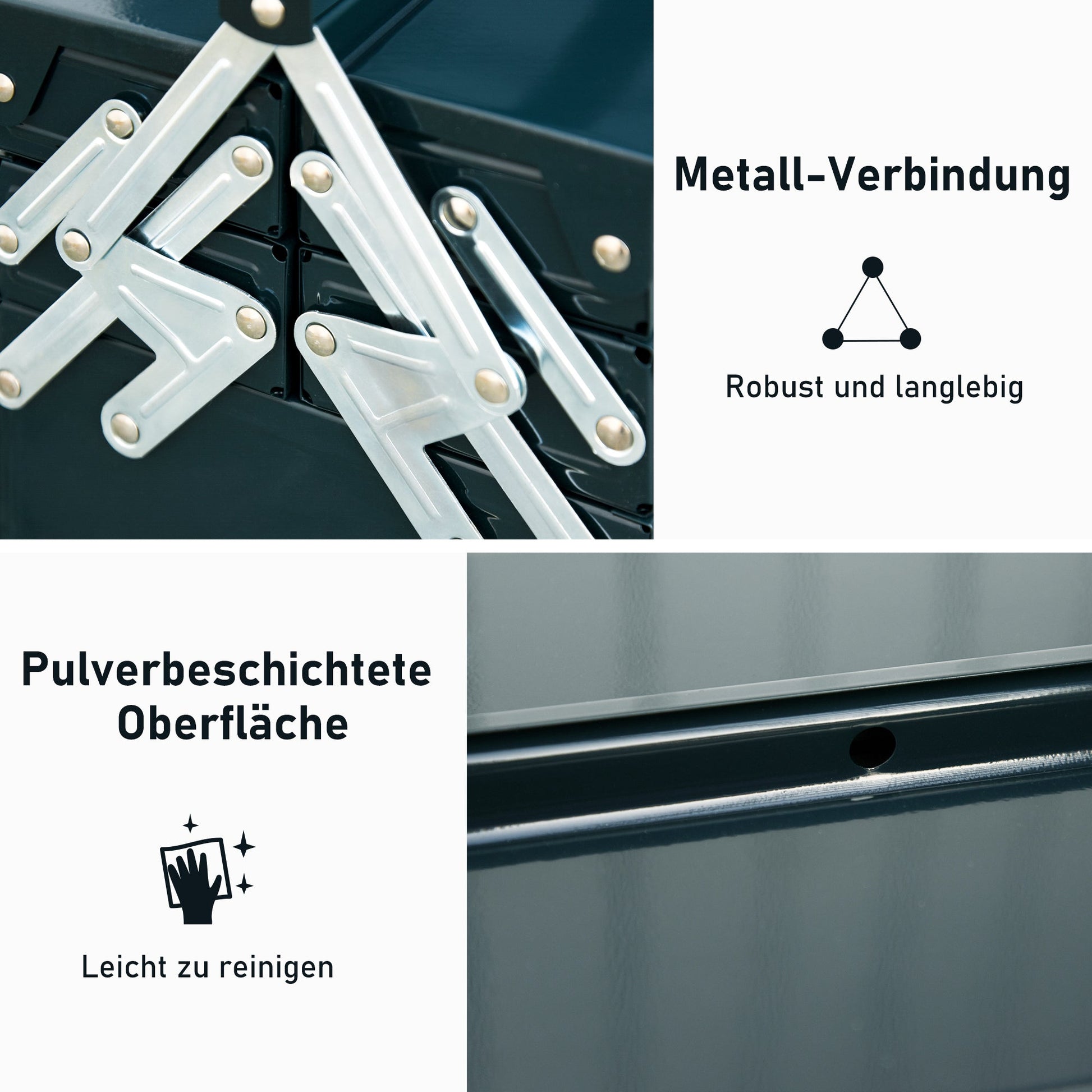 Steel casing: The toolbox is made of durable steel. The material is scratch- and rust-resistant.