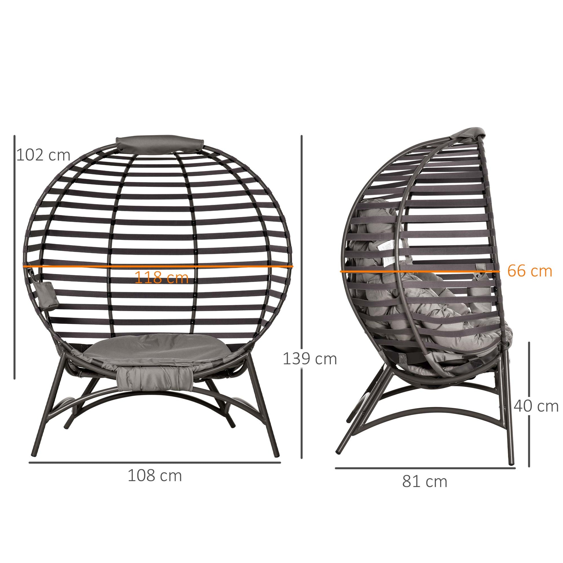 This comfortable and supportive single egg chair is large enough for you to relax for hours on end. It is fitted with an inner seat and a large padded cushion. This chair is great for gardens, porch areas, and other favorite outdoor spots.
