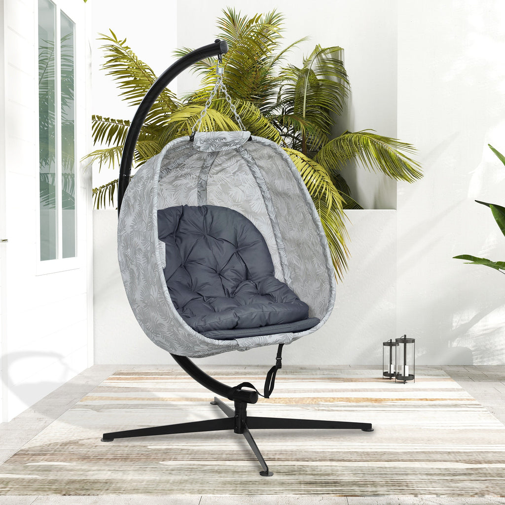 Egg-Shaped Outdoor Hanging Chair, Foldable Swing Hammock with Stand, Gray
