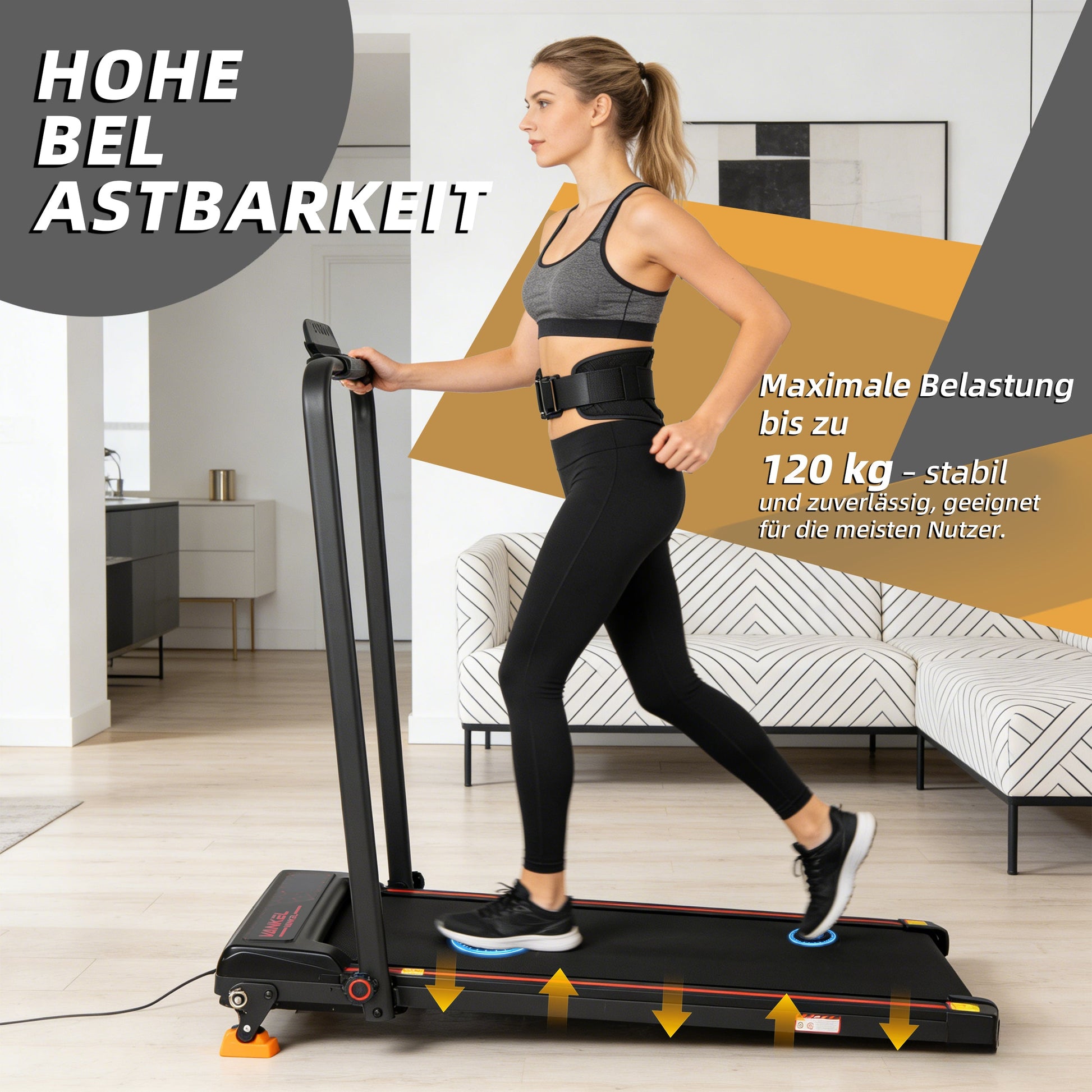 Experience a comfortable running surface of 900 x 380 mm, which offers ample space for a pleasant workout. The modern, minimalist design blends harmoniously into any living environment, whether it is your living room, bedroom, or office.