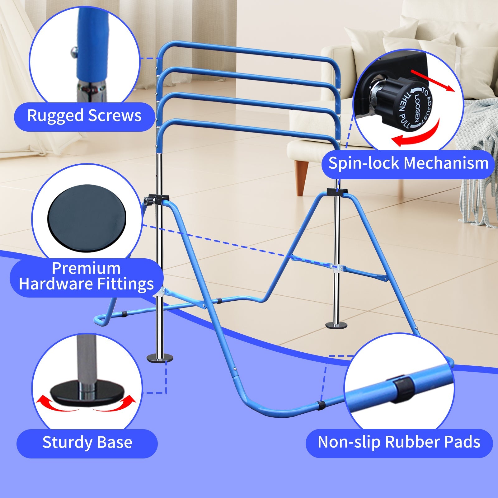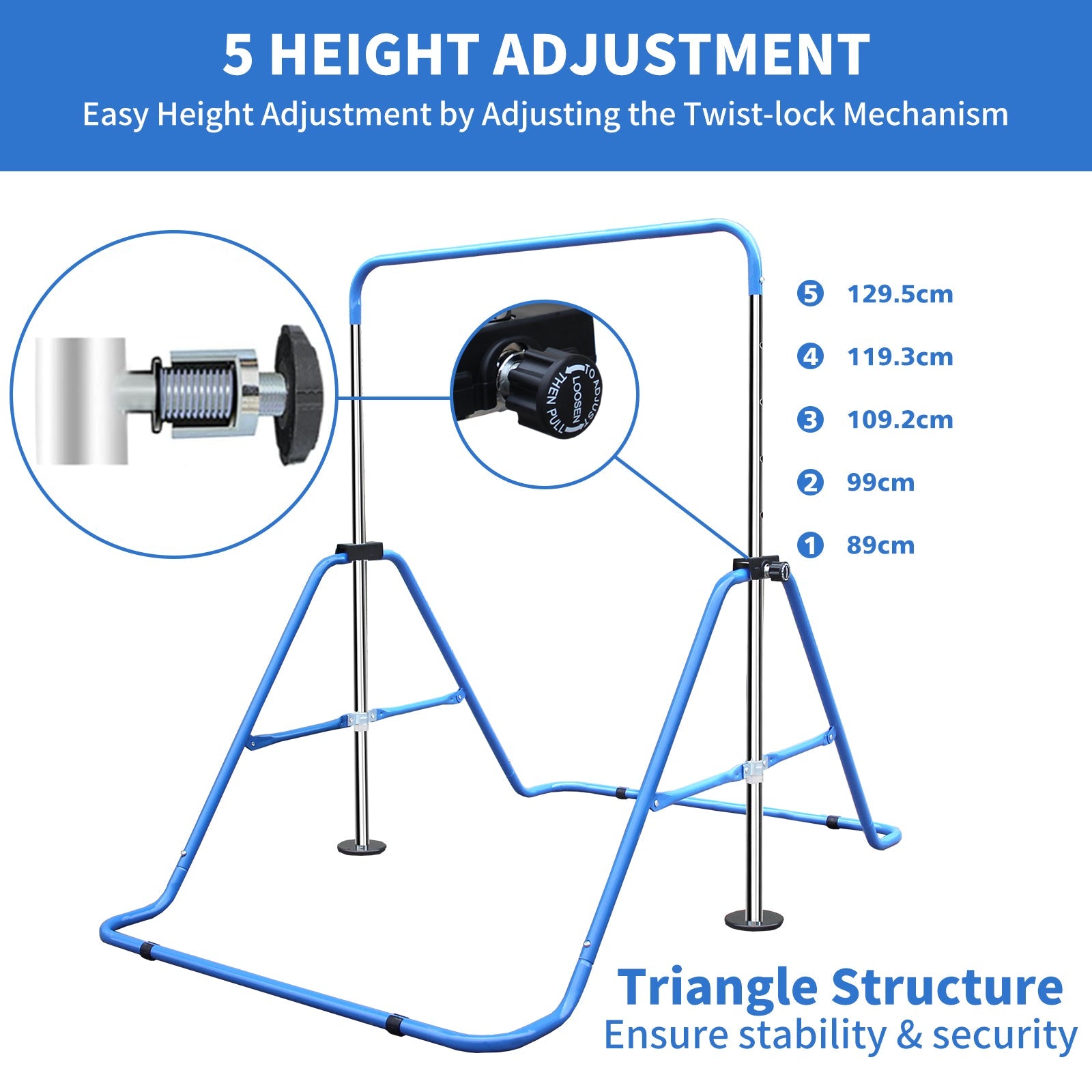 Expandable Gymnastics Bar, Height Adjustable Folding Junior Training, Blue