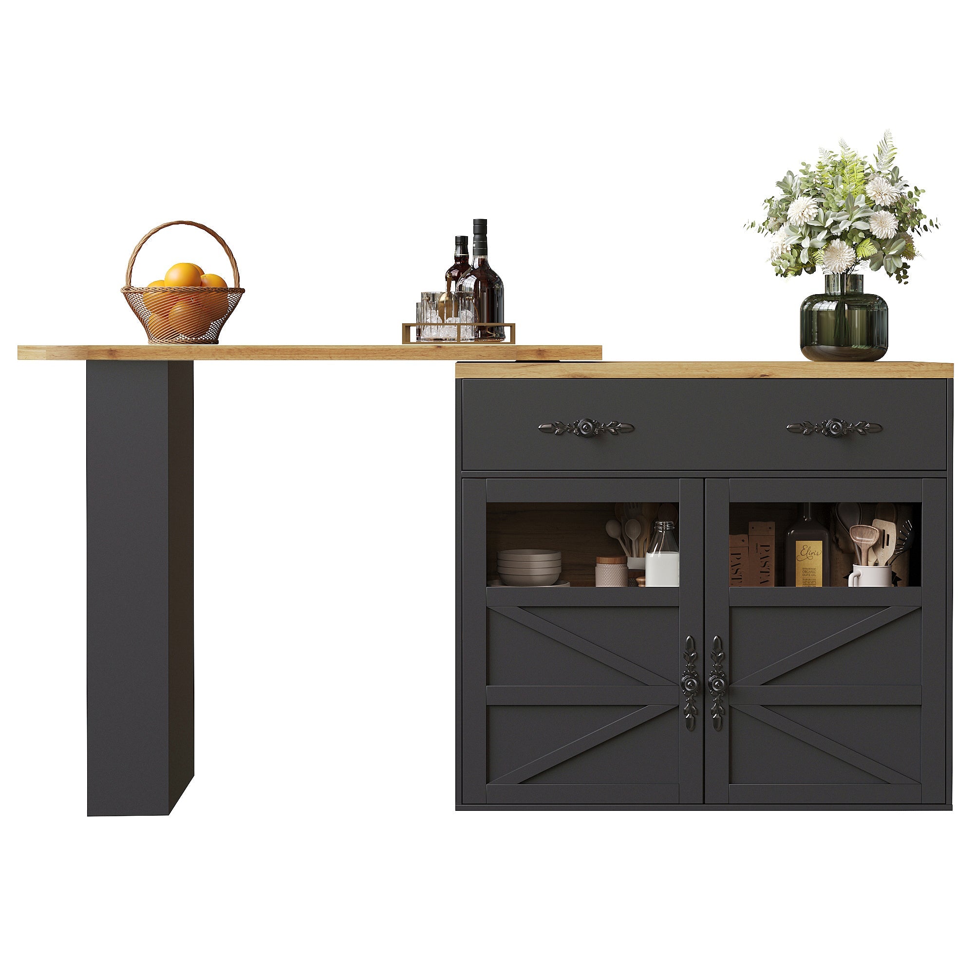 Extendable Bar Table, Rotatable Dining, Movable, High Table, Storage Shelves, Black
