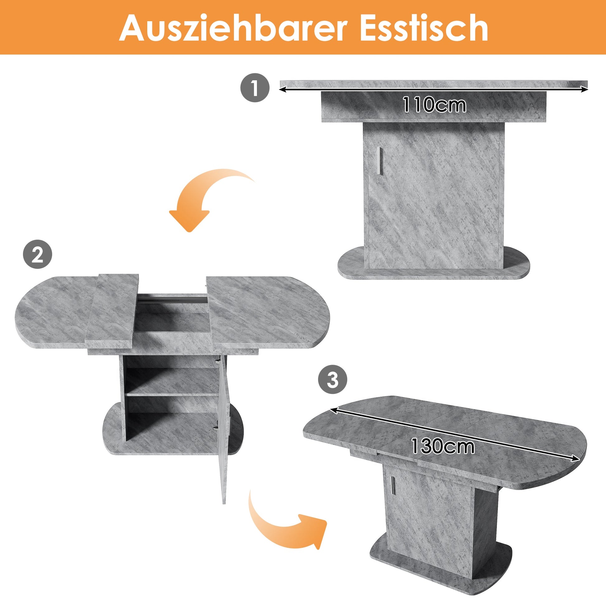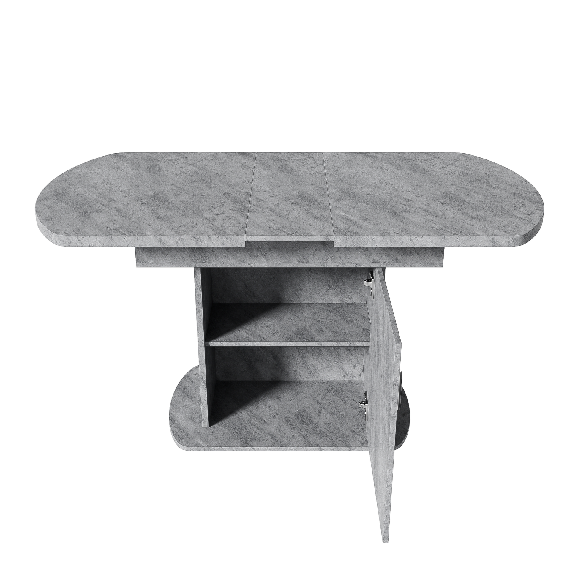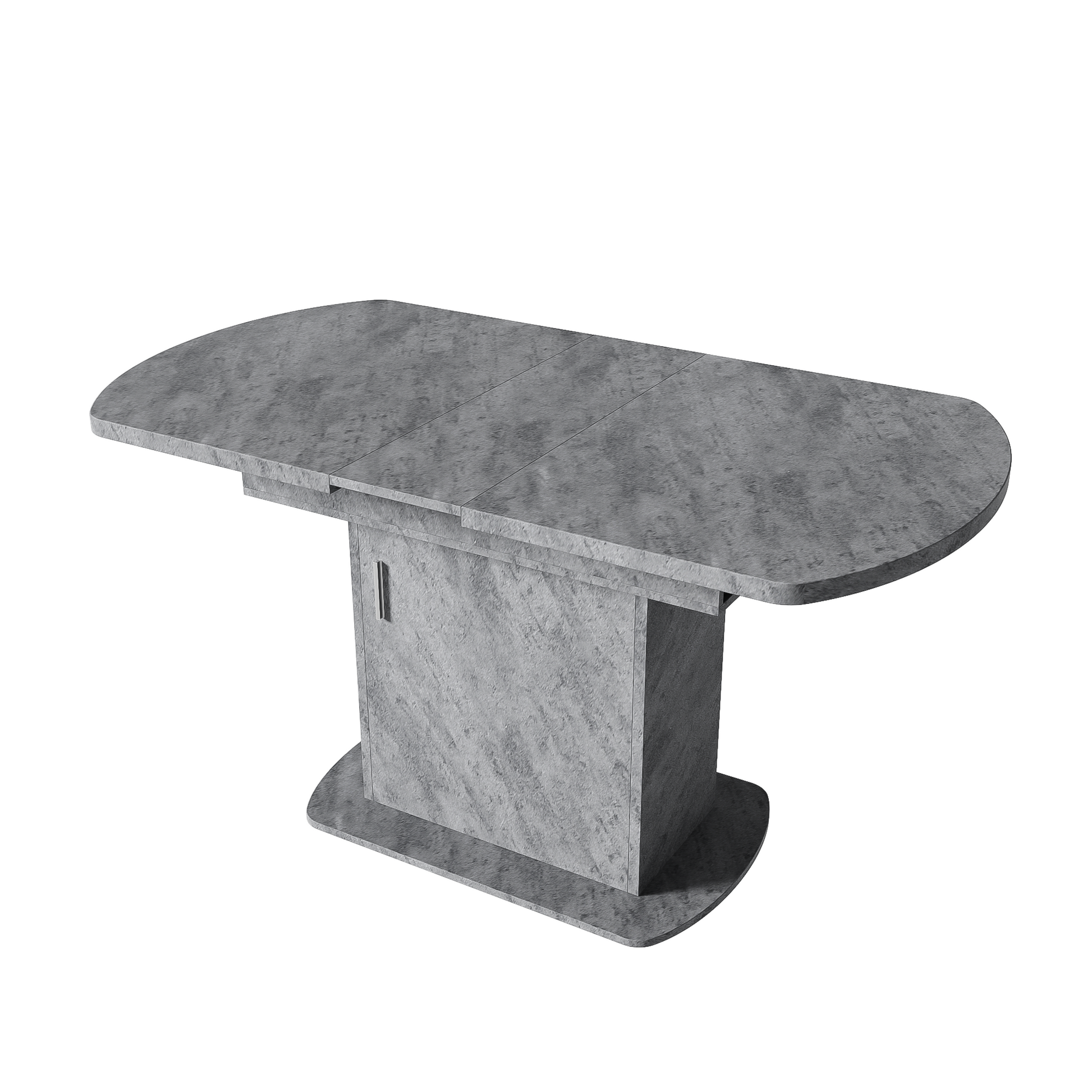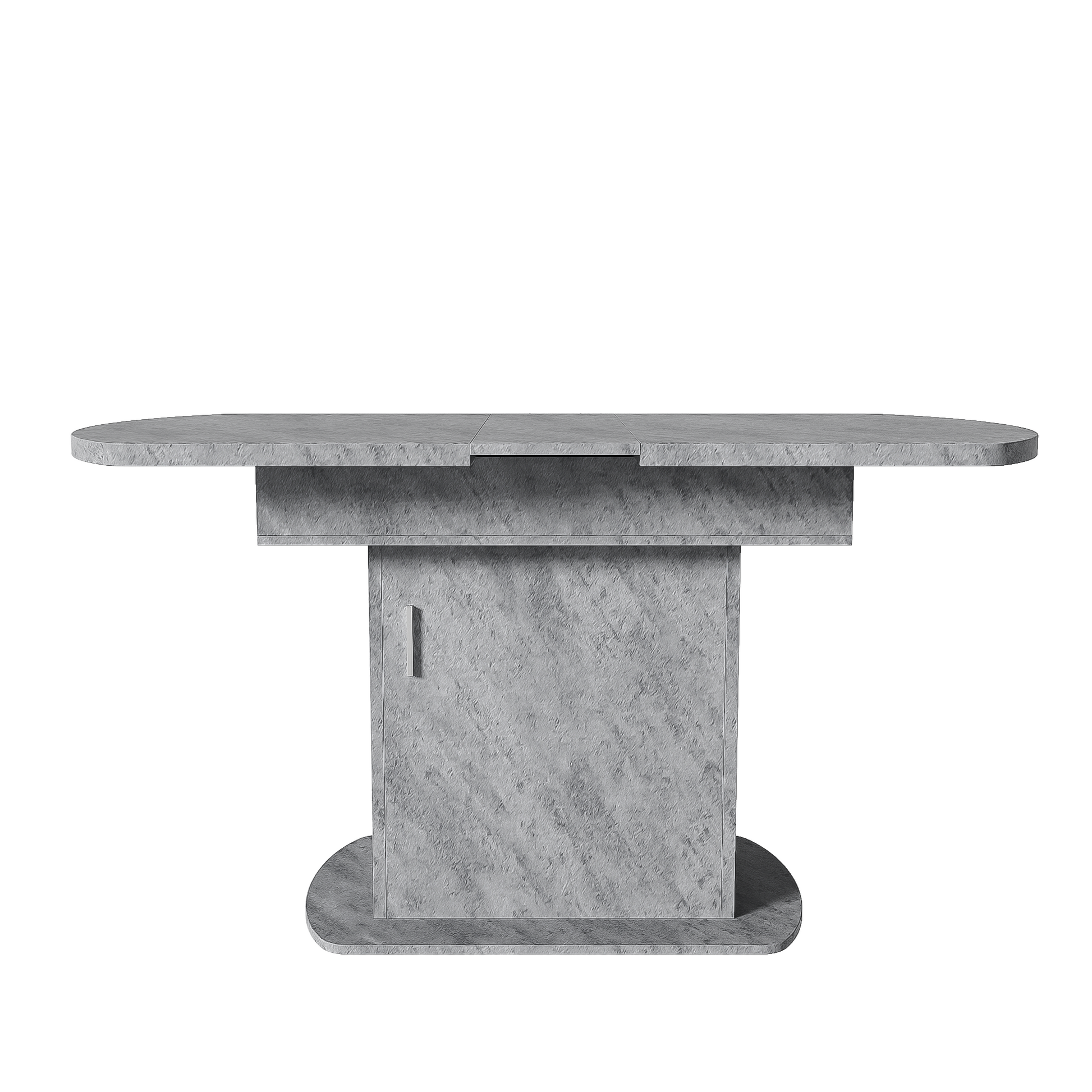 Extendable Oval Dining Table with Storage and Minimalist Design, Concrete Look and Silver Handle