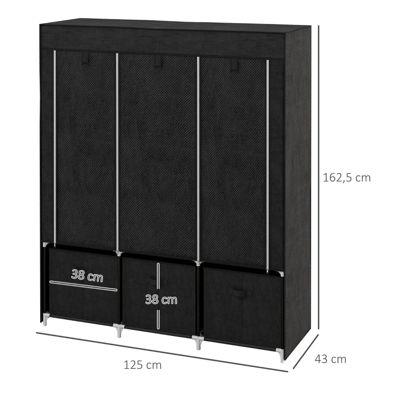 Fabric Wardrobe, Folding, 3 Drawers, Black