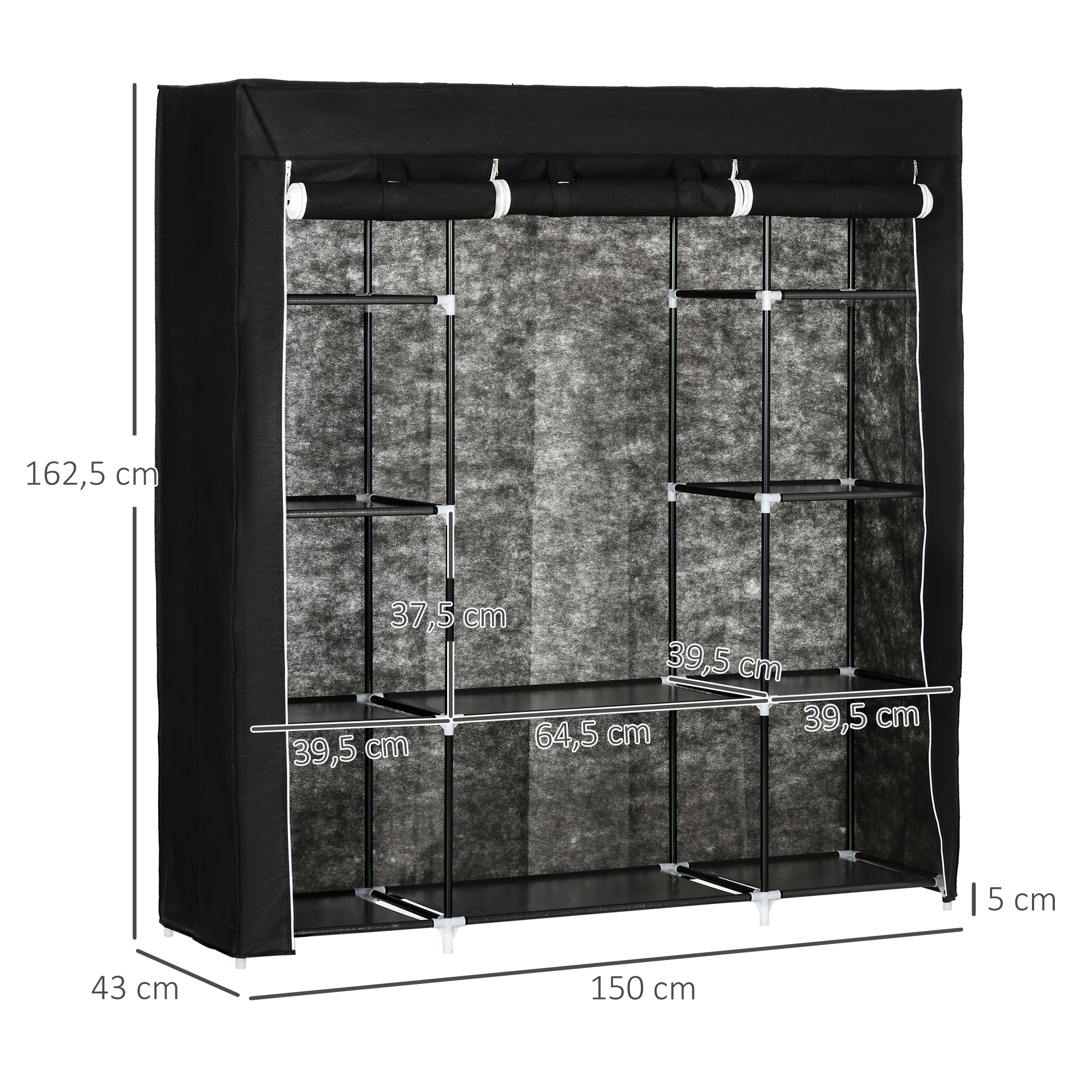 Fabric Wardrobe, Zippered 1 Clothes Rail 10 Shelves, Nonwoven Fabric