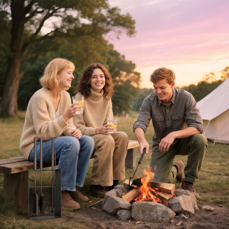 Space-Saving: With compact dimensions of 28W x 13D cm, this fireplace tool set offers full functionality in a small space. Ideal for any indoor fireplace or outdoor fire pit.