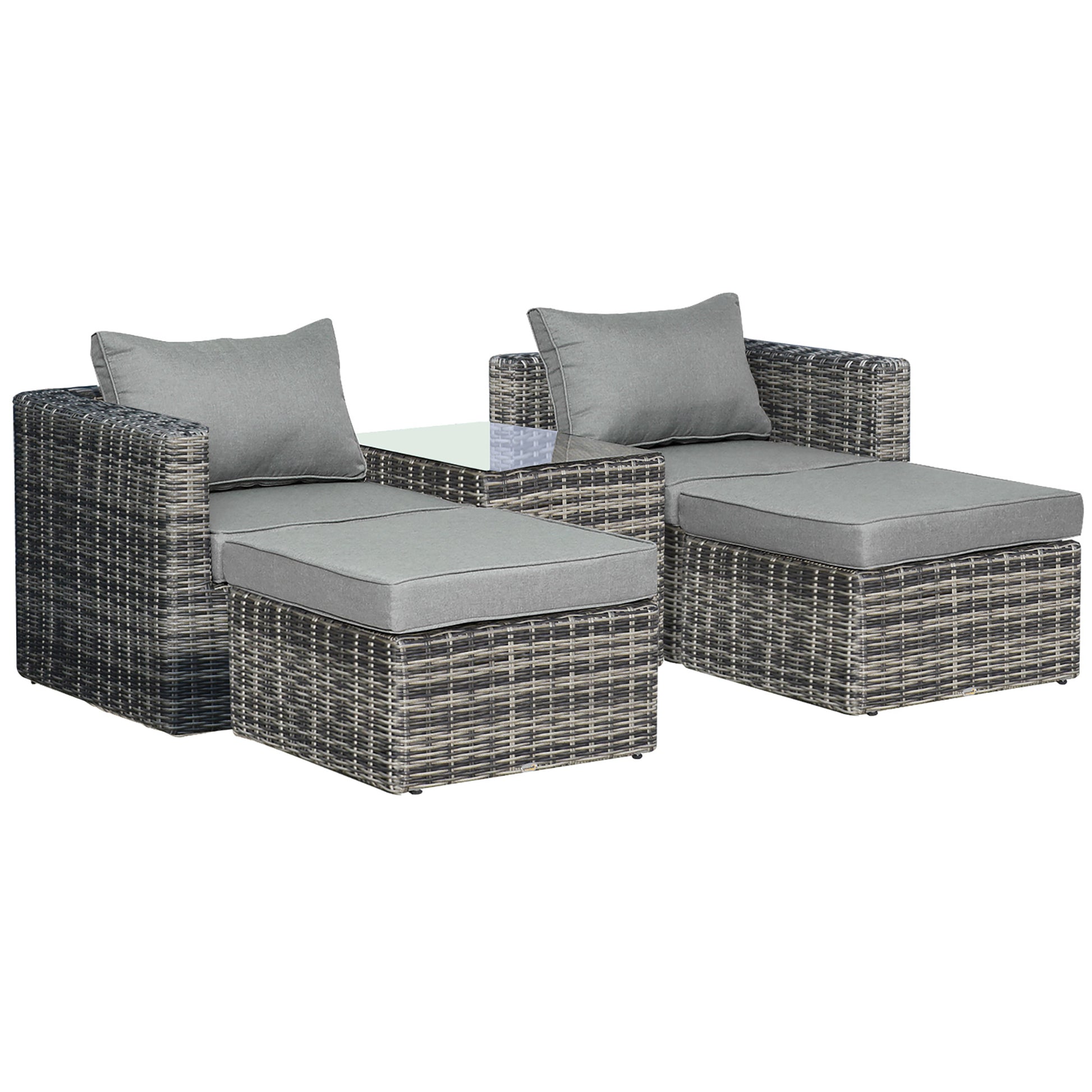 Five Piece Armchair Stool Table Set Rattan, Mixed Grey