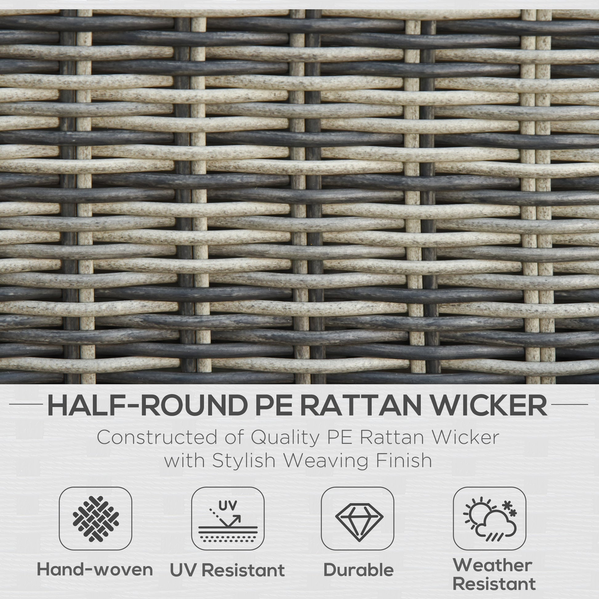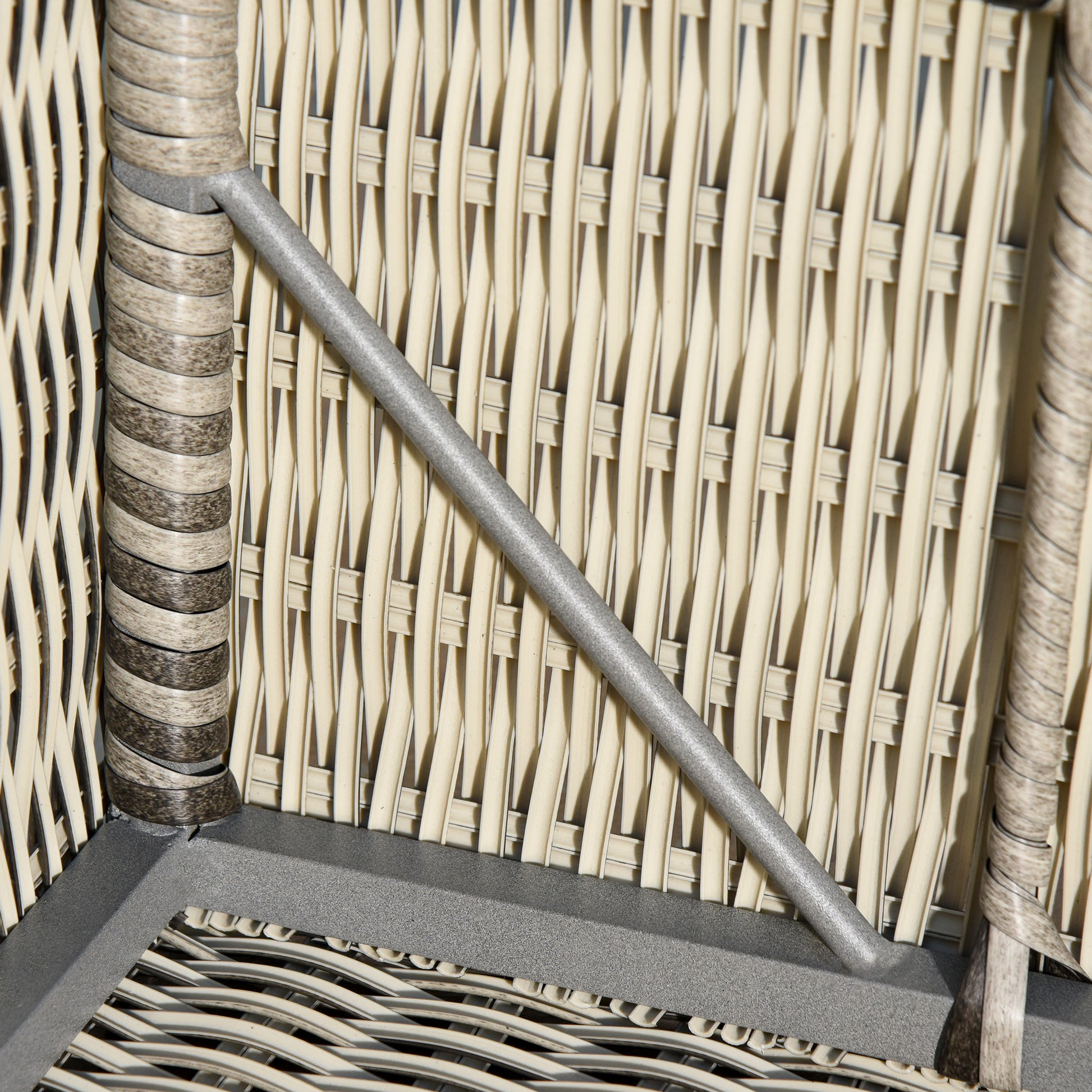 The set features an aluminum frame wrapped in rattan, giving the garden rattan furniture a solid and tough core. The plastic wicker exterior provides protection against light weathering and UV fading.