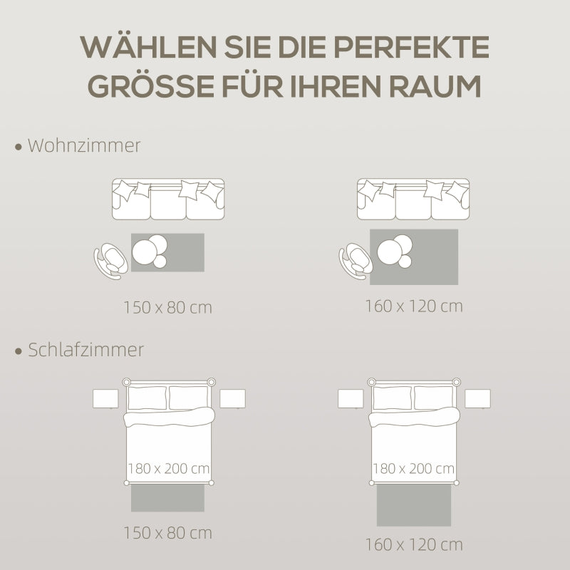 160L x 120W x 0.7H cm. Note: Any creases that may have occurred during packaging can be smoothed out by simply laying the rug flat and weighing it down with heavy objects for a few days.
