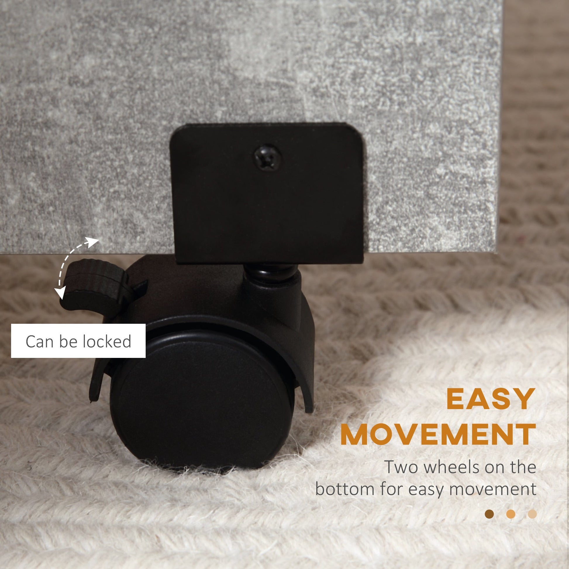 Easy mobility: Equipped with castor wheels and brakes, this table can be effortlessly moved and secured, adapting to your dynamic living space needs.