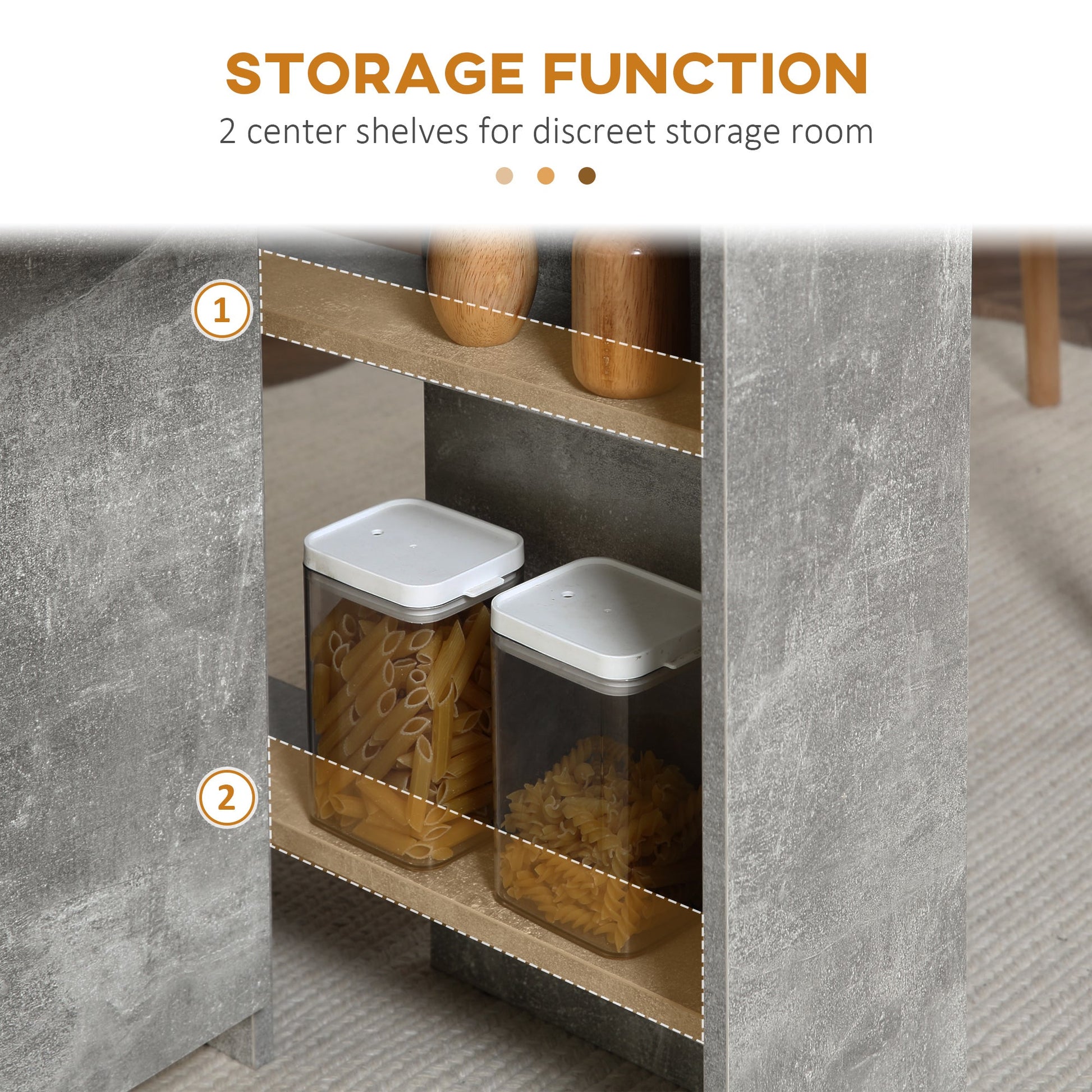 Convenient storage: Features two discreet shelves for keeping essentials close yet hidden, maximizing functionality in compact living areas.