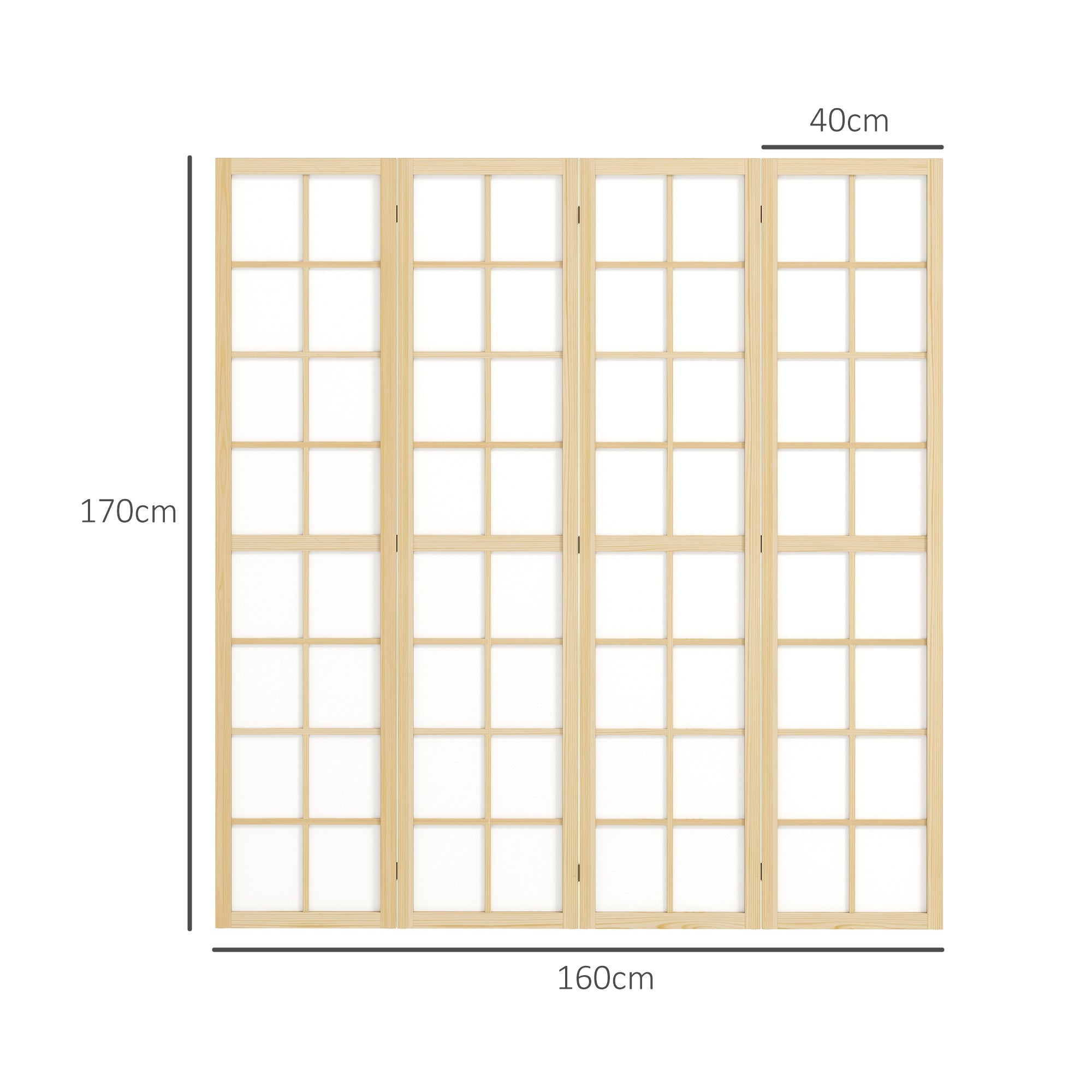 Folding Screen 4-part 160 x 170 cm Room Divider Natural