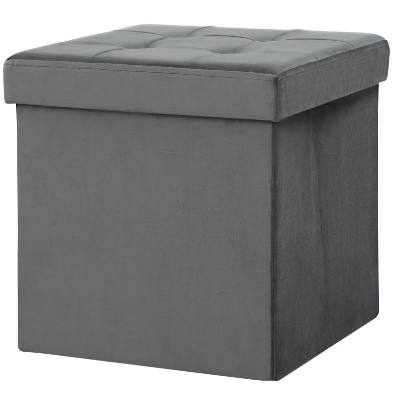 Folding Storage Stool with Storage Box, Foam, MDF, Grey
