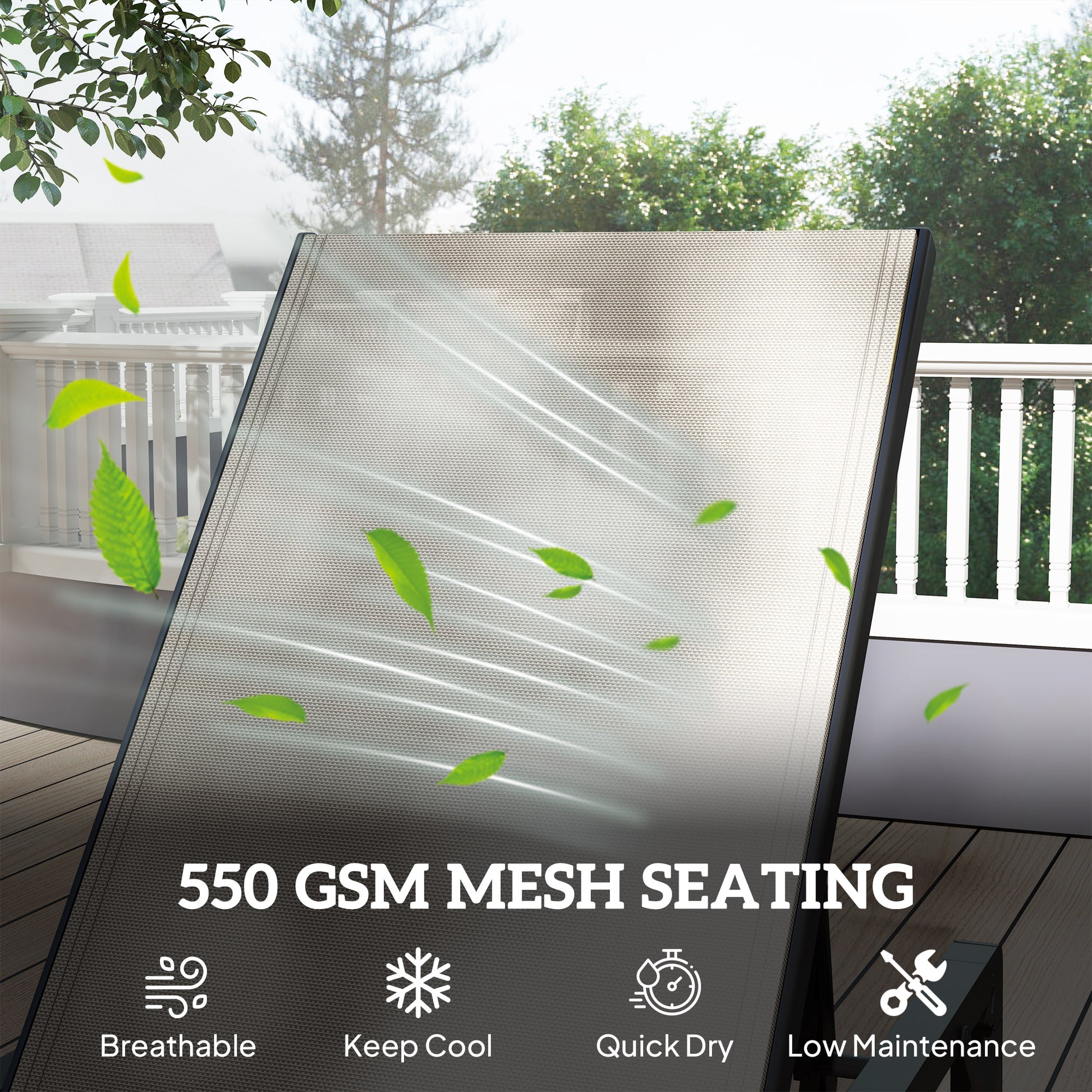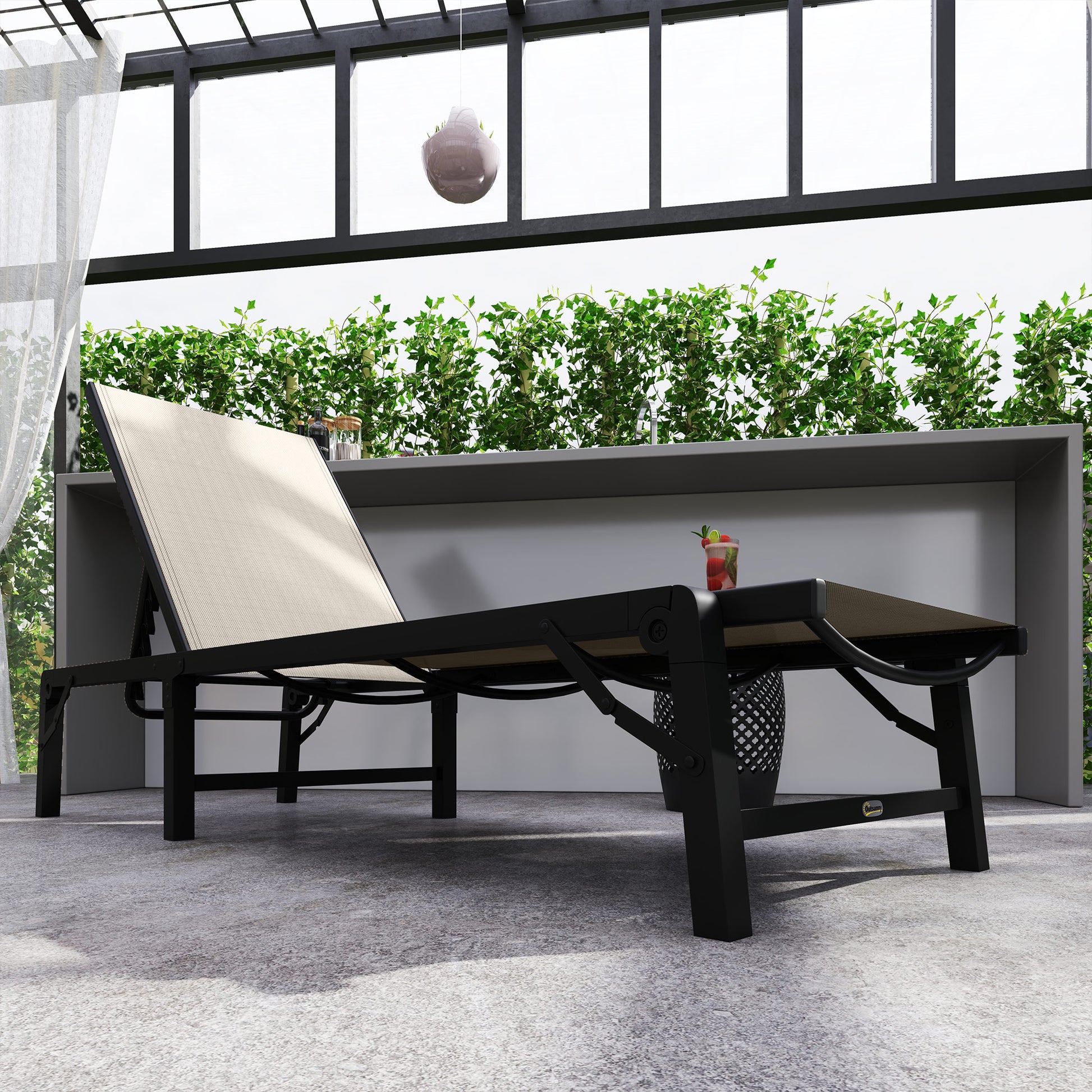 Crafted from water-resistant Texteline mesh, the sun lounger offers breathability and withstands outdoor elements, keeping you cool and comfortable in any outdoor setting.