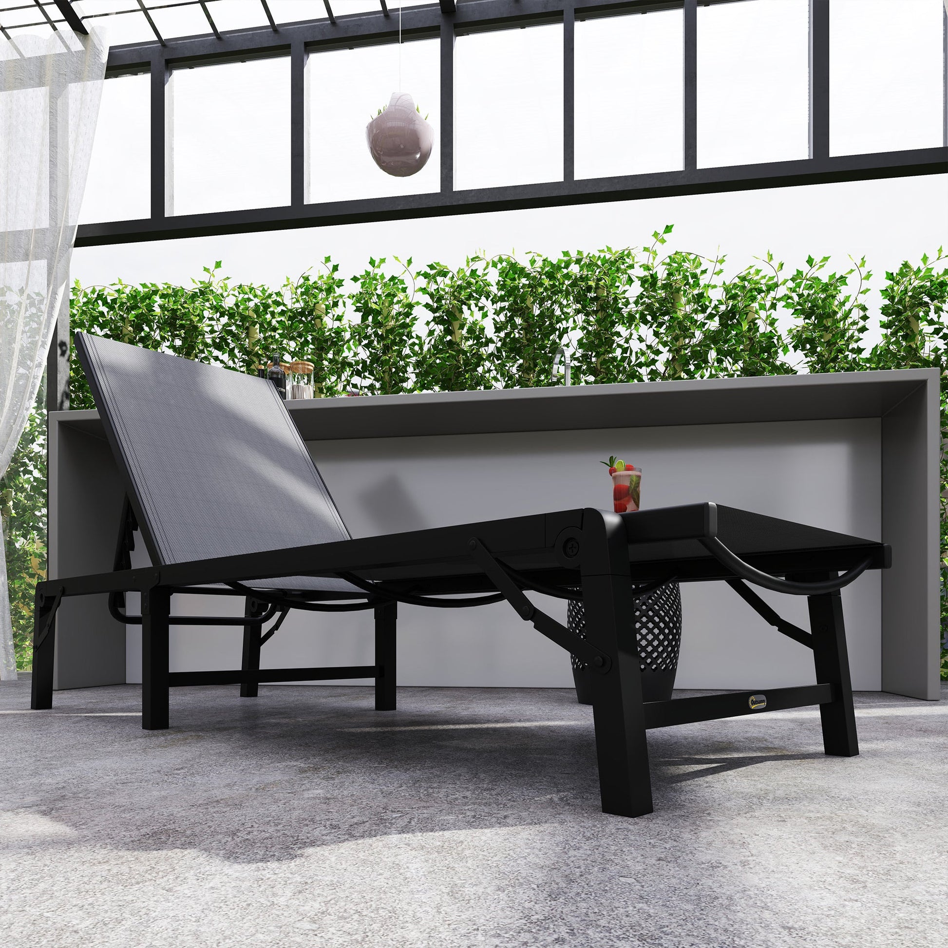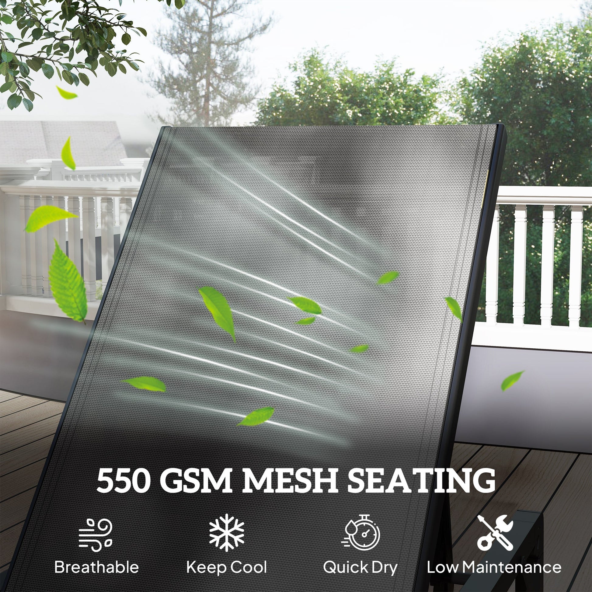 Quick-Drying Fabric: Crafted from water-resistant Texteline mesh, the sun lounger offers breathability and withstands outdoor elements, keeping you cool and comfortable in any outdoor setting.