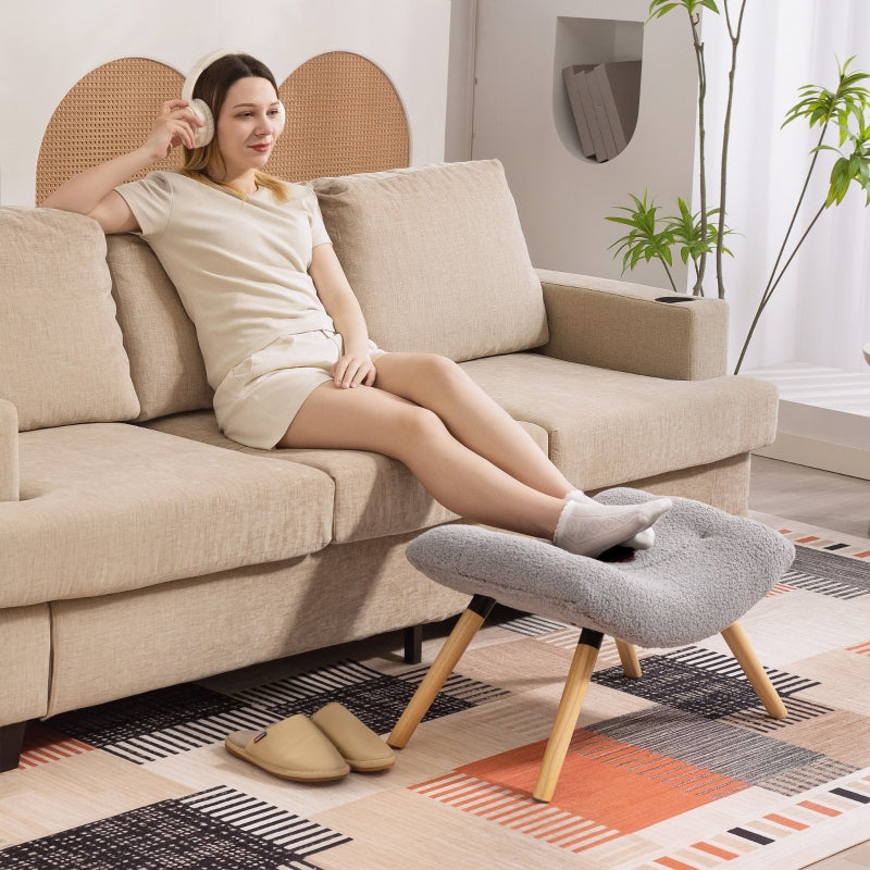 Solid base: The wooden ottoman rests on sturdy beechwood legs that provide reliable stability and support for everyday use.