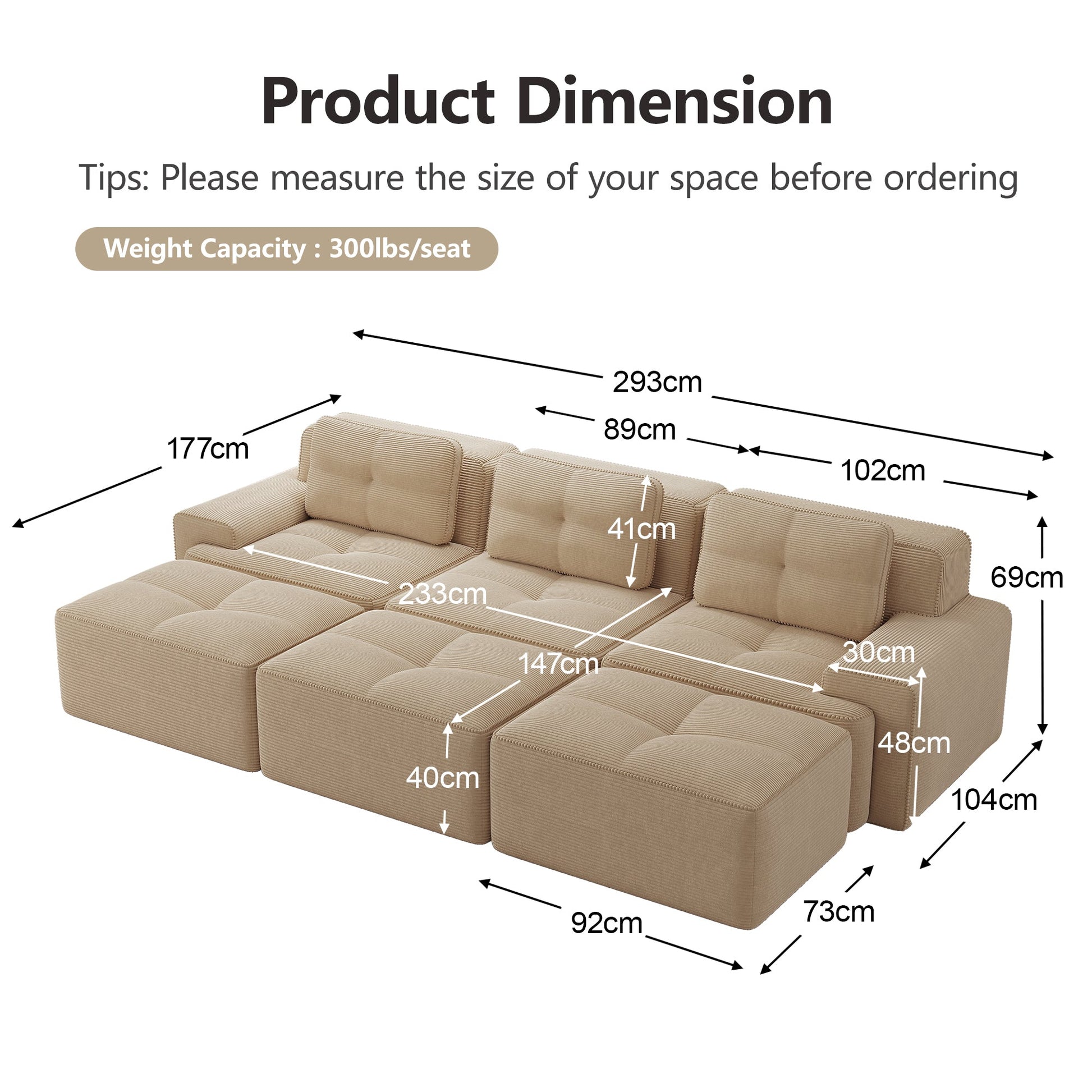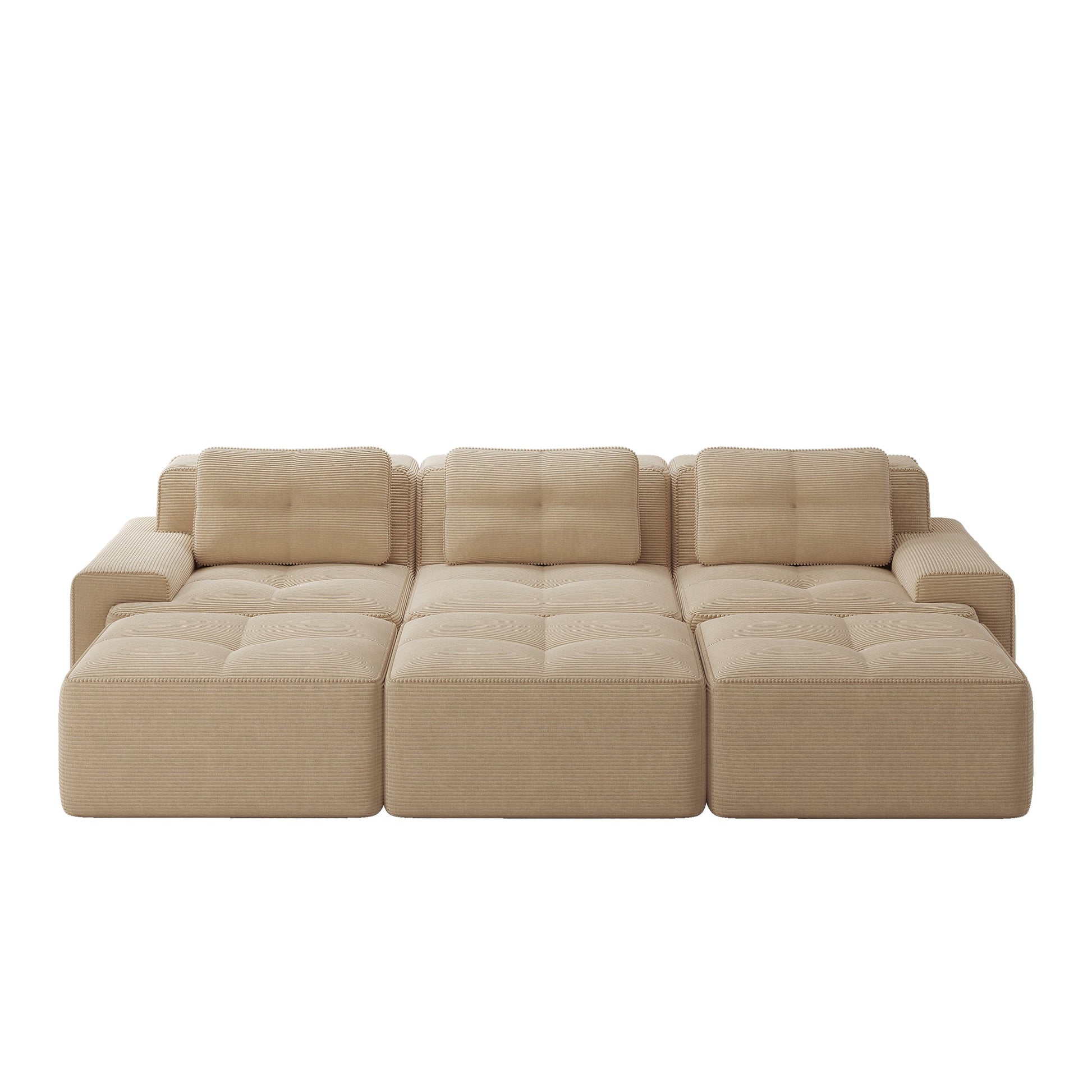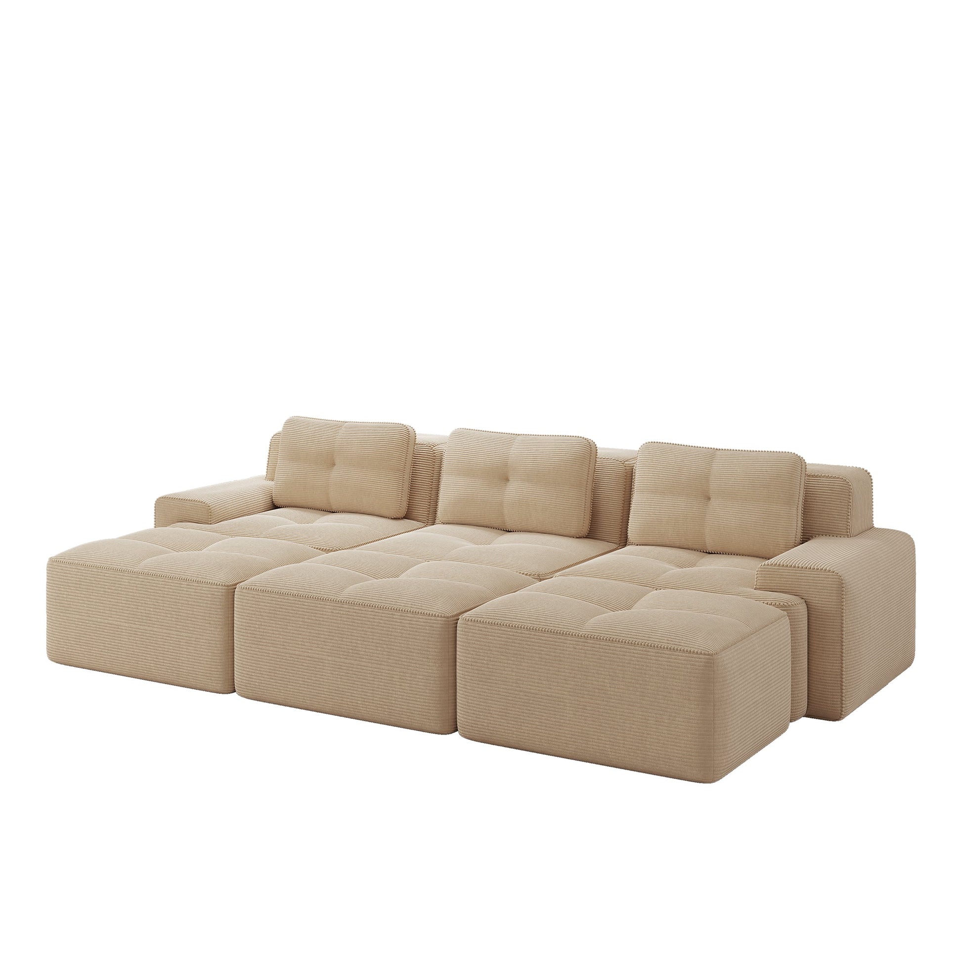 【Soft & Pet-Friendly Corduroy Fabric】Enjoy our corduroy sofa, wrapped in velvety-soft, breathable fabric that is both luxurious and durable. This modular sofa easily withstands pet scratches—with scratch-resistant, easy-to-clean material for complete peace of mind. Finished with pearl-like piping, it's a stylish yet practical sofa for the living room.