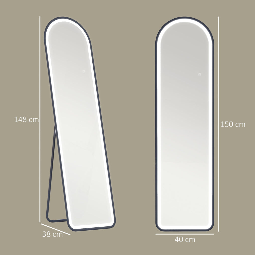 Full-Length Mirror, 150 x 40 cm LED Lighting, 3 Light Colors, Black