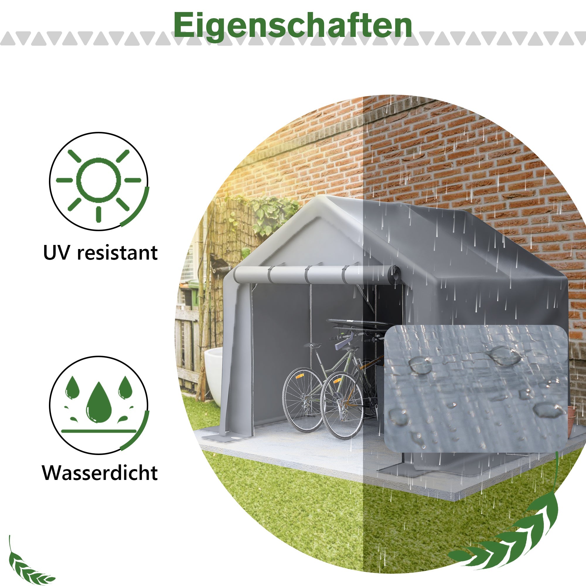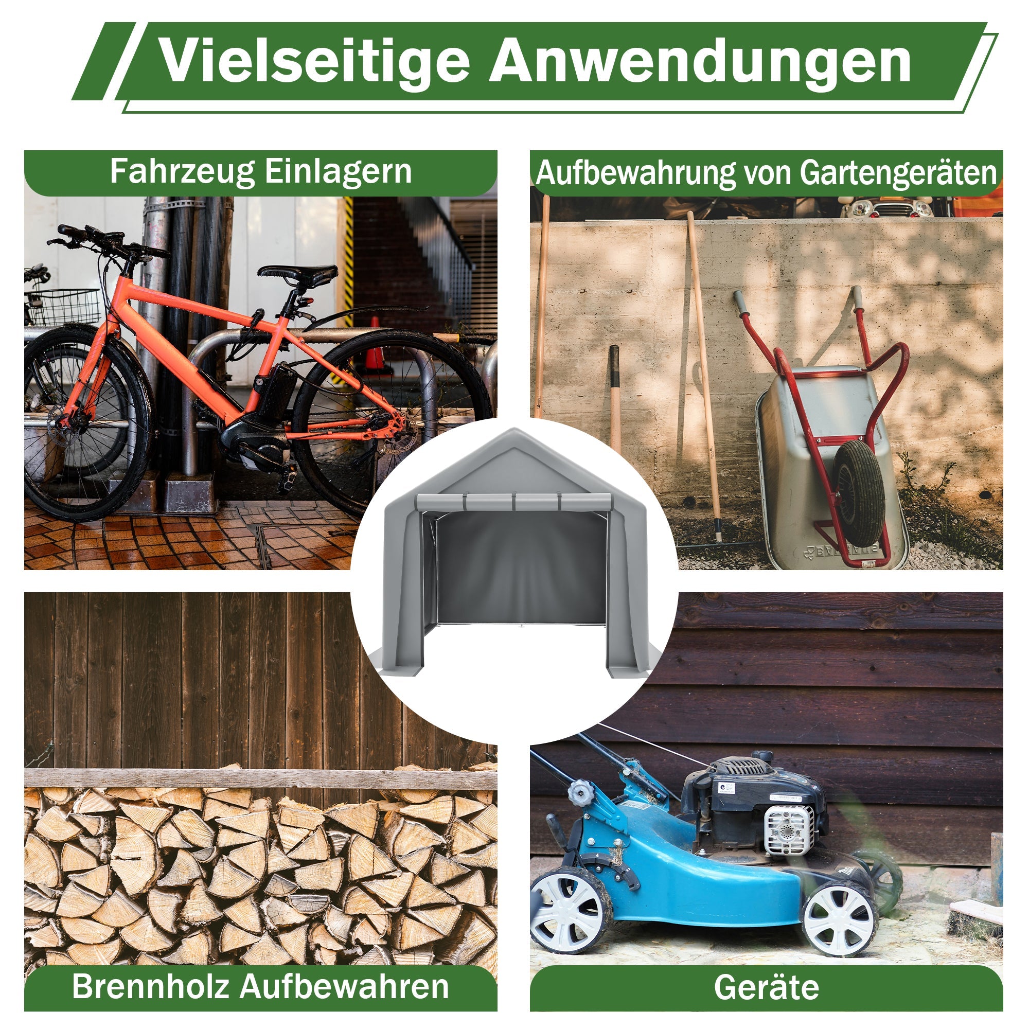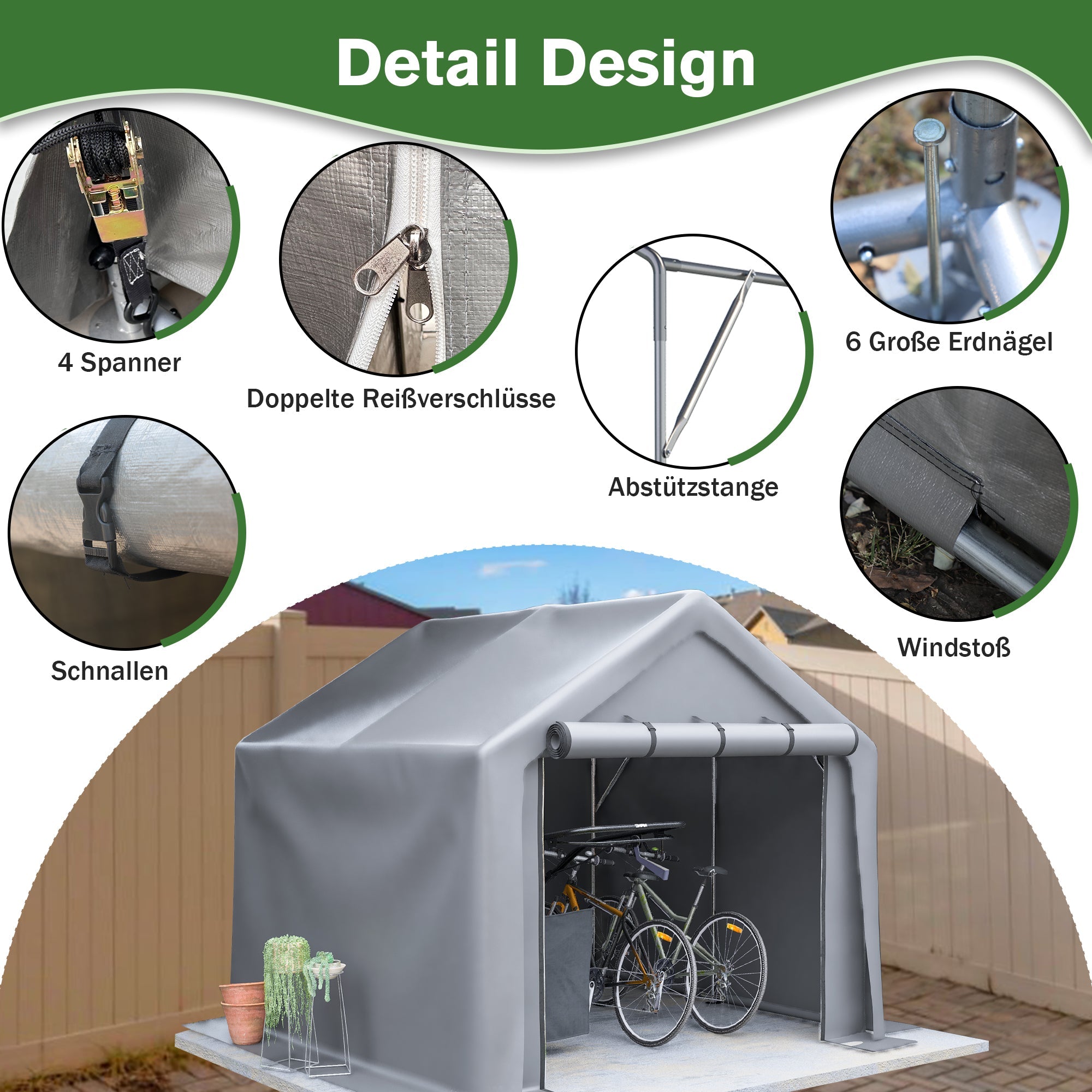 Garage Tent 244x241x217cm, Waterproof Tool & Bicycle Shed, Gray