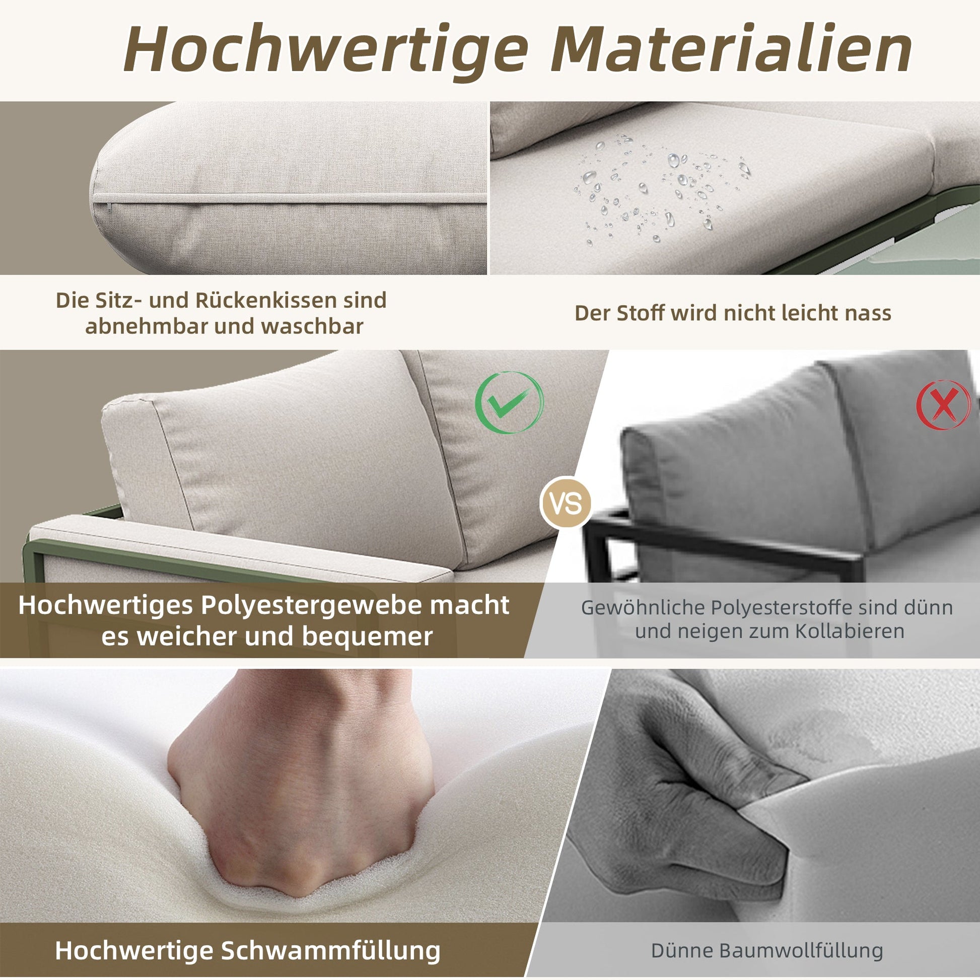 Sturdy structure: Our outdoor sofa features a durable, galvanized iron frame, and the legs are carefully designed for stability and to prevent tipping. The galvanized iron frame is built to last, ensuring high quality both indoors and outdoors and resisting rust.