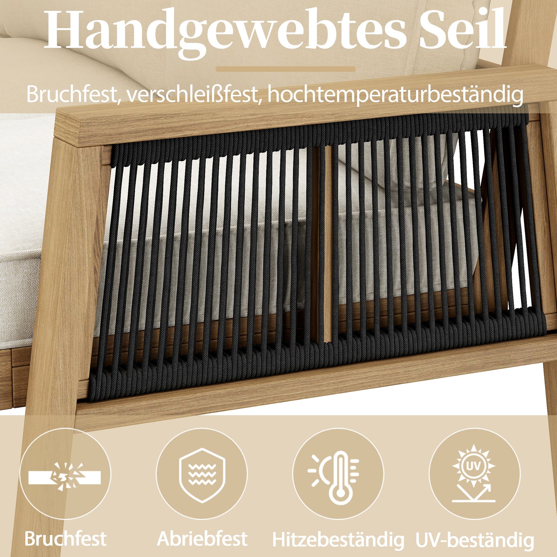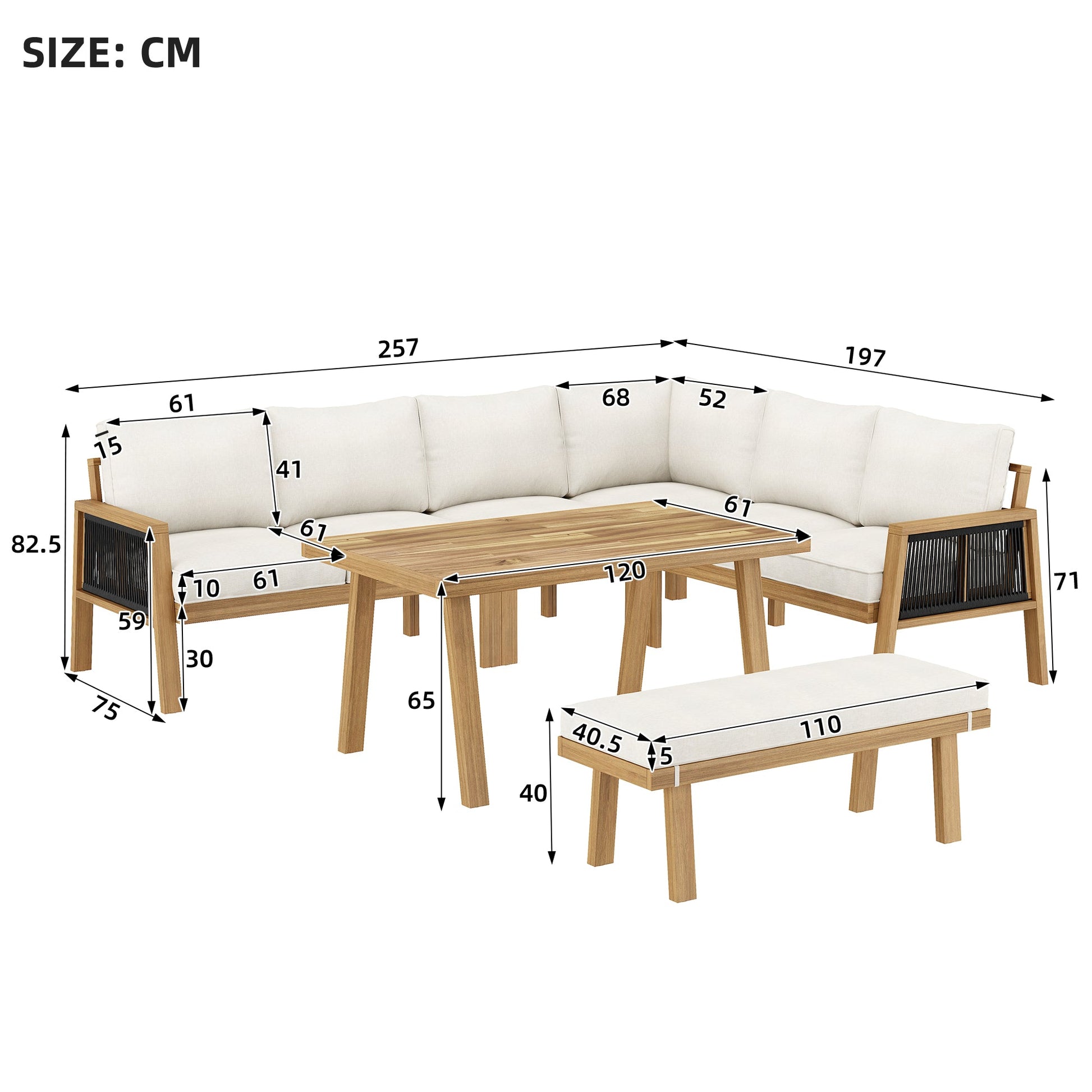 Garden Furniture Set with Corner Sofa and Coffee Table, Acacia Wood and Woven Rope, Natural and Cream