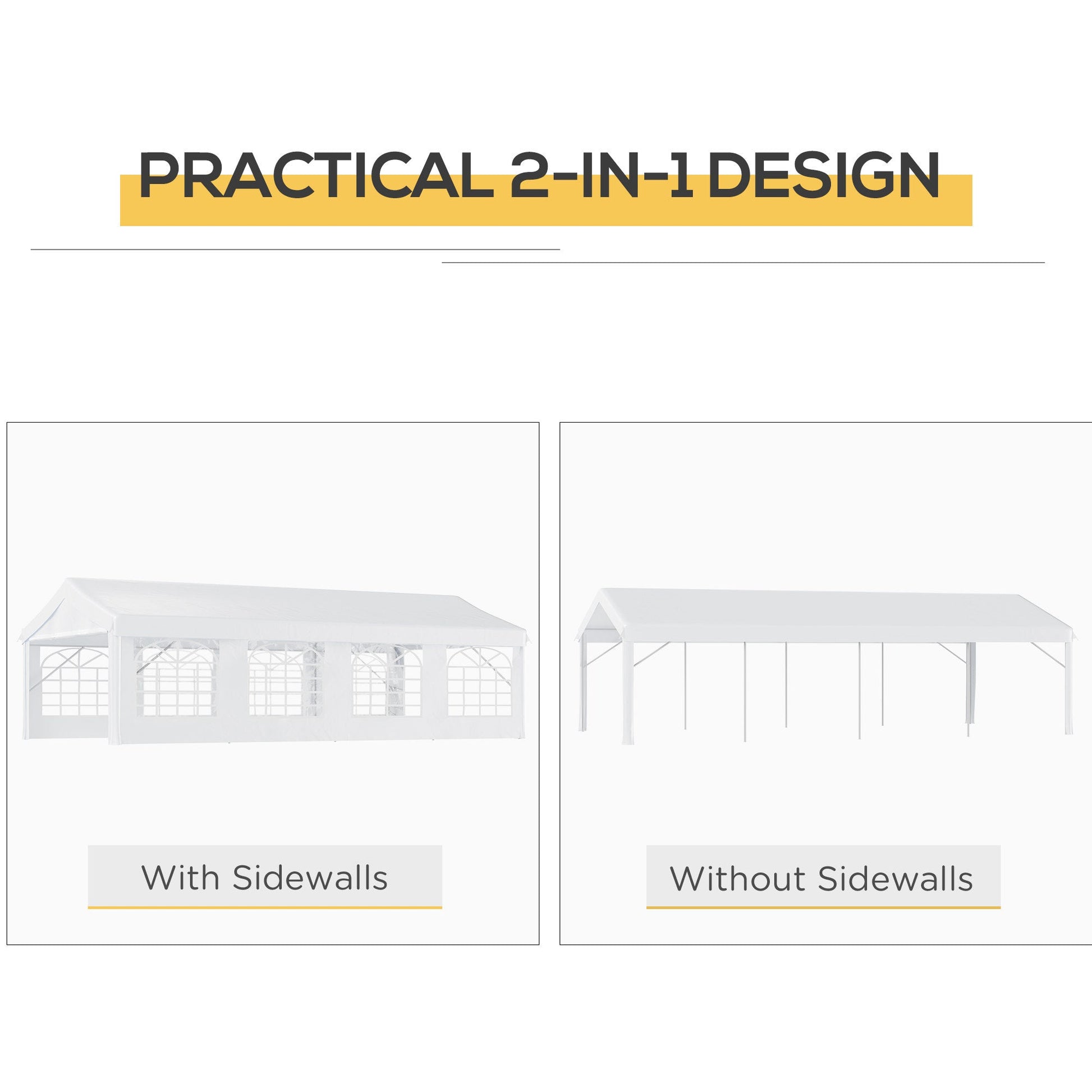 Removable walls: All four sides of this large gazebo can be taken off. This is great for cooler days to keep temperature in, and for hot days to keep the party as cool as possible.