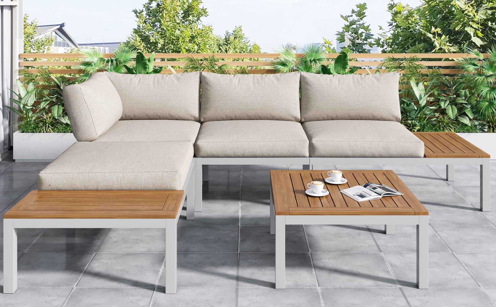 Garden Lounge Chair Set, Galvanized Steel Frame with Acacia Wood Top, Beige