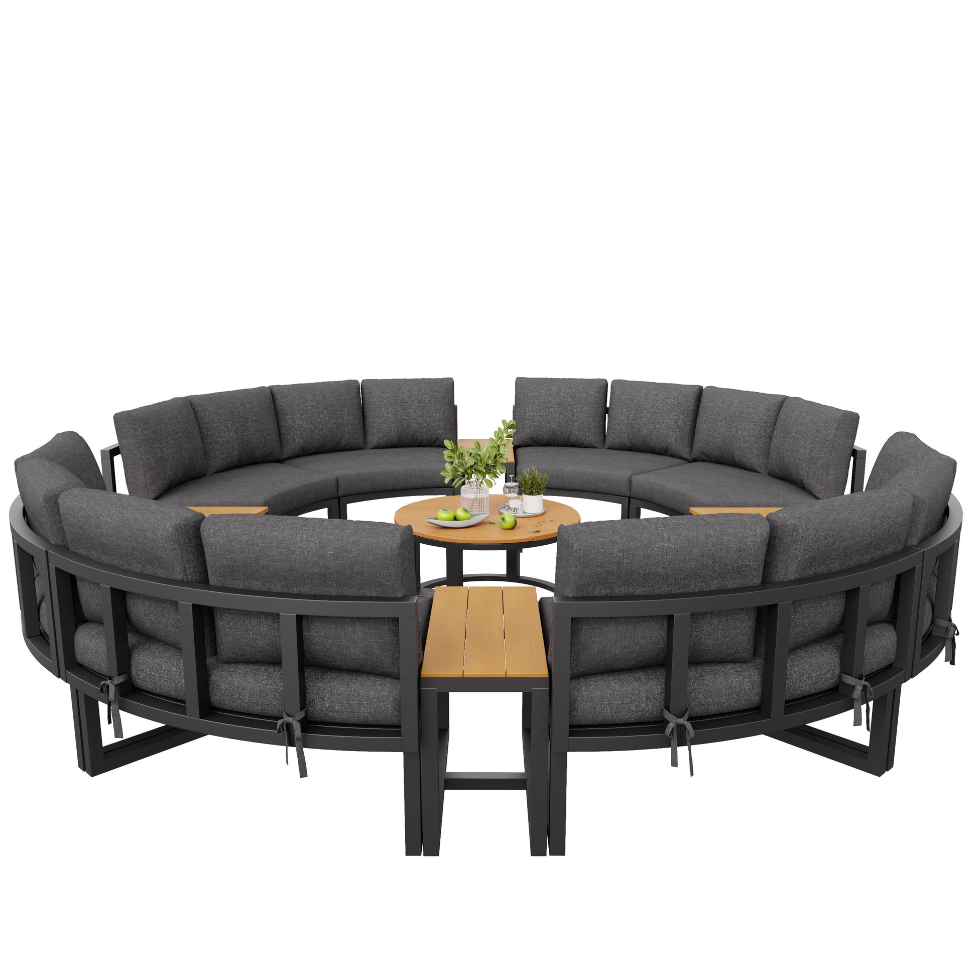 Garden Lounge Set 8-12 Person Round Sofa Adjustable Legs - Grey