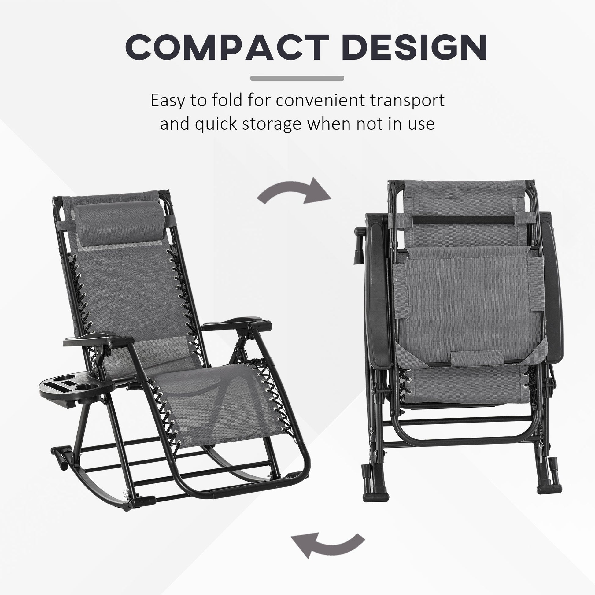 Garden Rocking Chair Folding Adjustable Zero-Gravity Sun Lounger - Grey