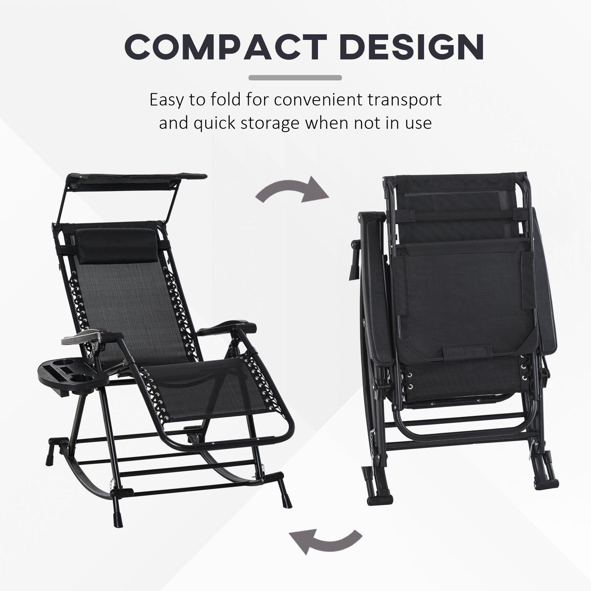 Garden Rocking Chair Folding Recliner Zero-Gravity Adjustable Sun Lounger, Black