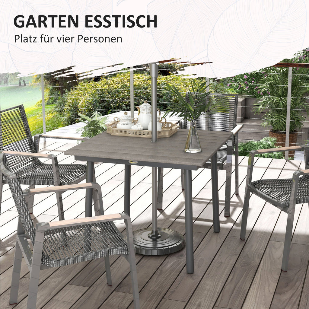 Garden Table Dining Table 4 People Umbrella Hole Slatted Frame HDPE Dark Grey