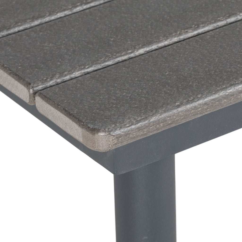This outdoor dining table is constructed from a rust-proof aluminum and HDPE frame, making it particularly robust and durable. The powder-coated finish provides additional protection. Despite its robust construction, the table is lightweight and therefore easy to transport.