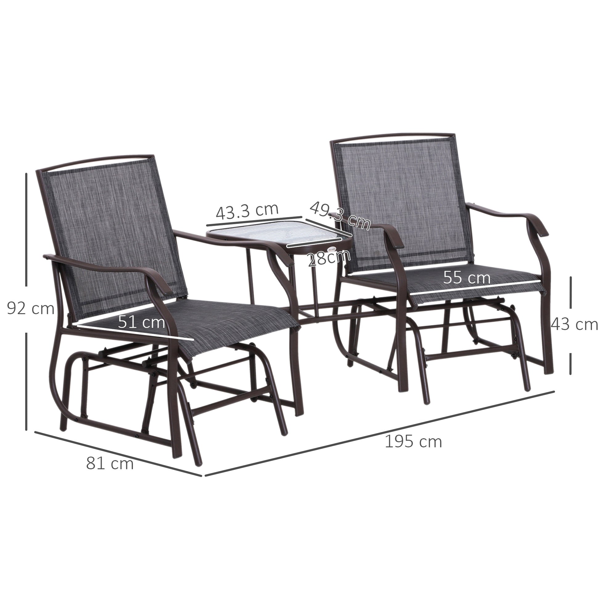 Gliding Jack and Jill Seat, Glass-Top Table, Brown/Grey