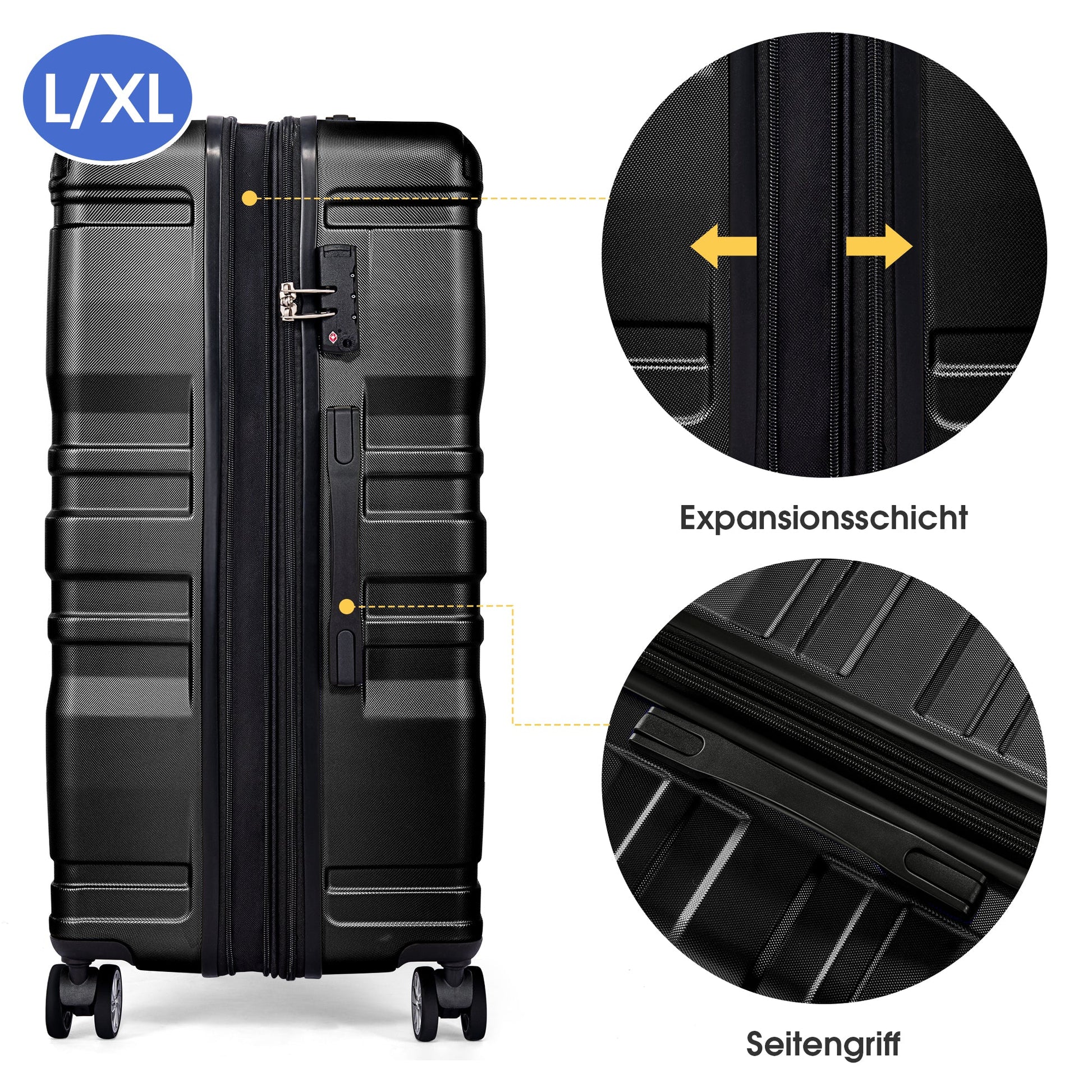 The high-quality hard-shell suitcase is made of wear-resistant ABS and is always resistant to compression and strong impacts. The recyclable material is essentially non-toxic, environmentally friendly, and also good for human health. The striped design paired with a stylish sunglasses design makes this suitcase a great travel companion.