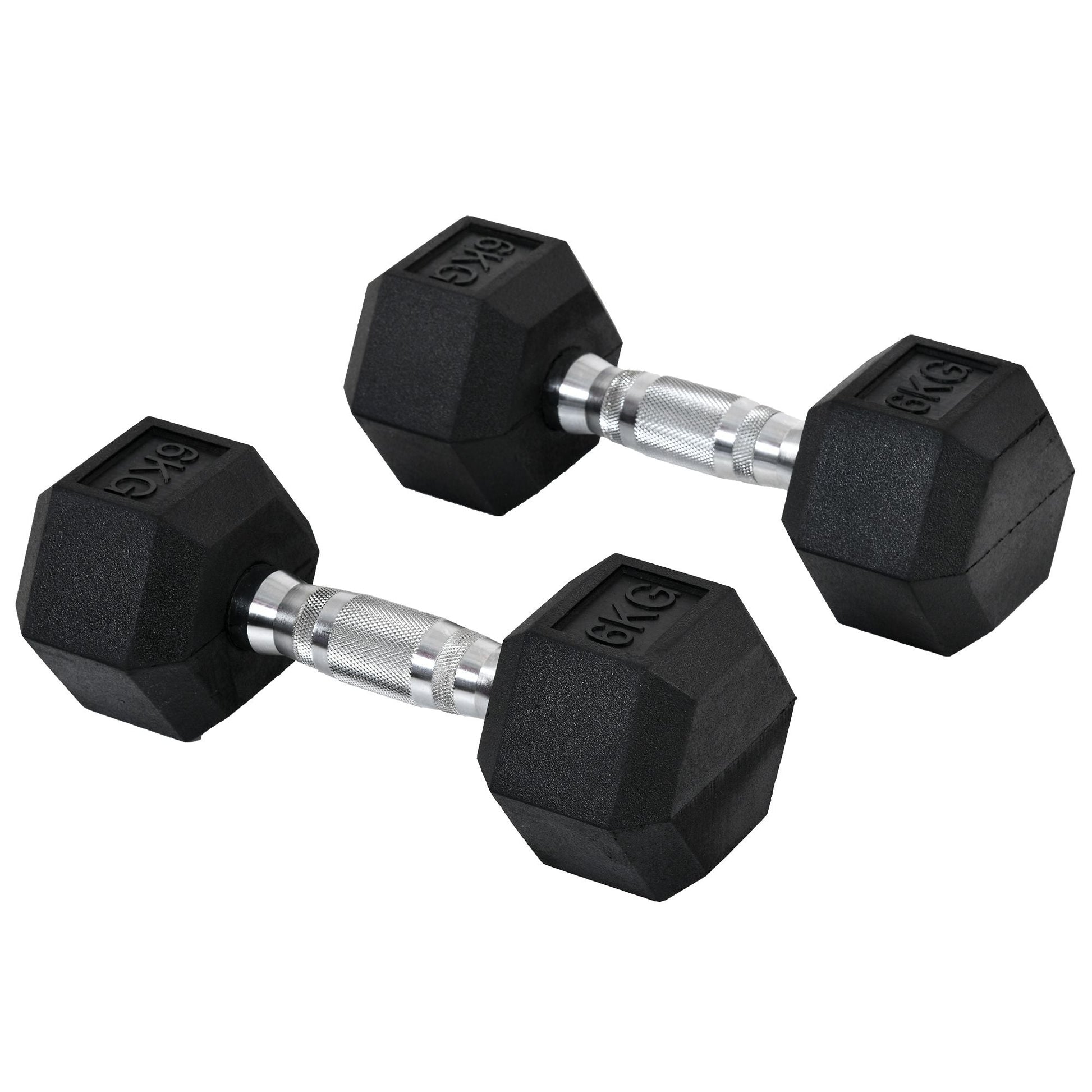 Hexagon Dumbbells, 2x6 KG, Cast Iron, Black