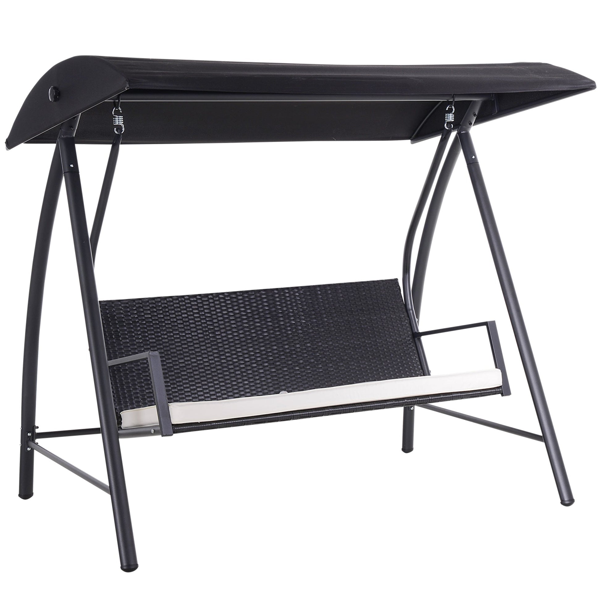 Hollywood Swing 3-Seater Garden Swing with Canopy, Black Polyrattan and Metal