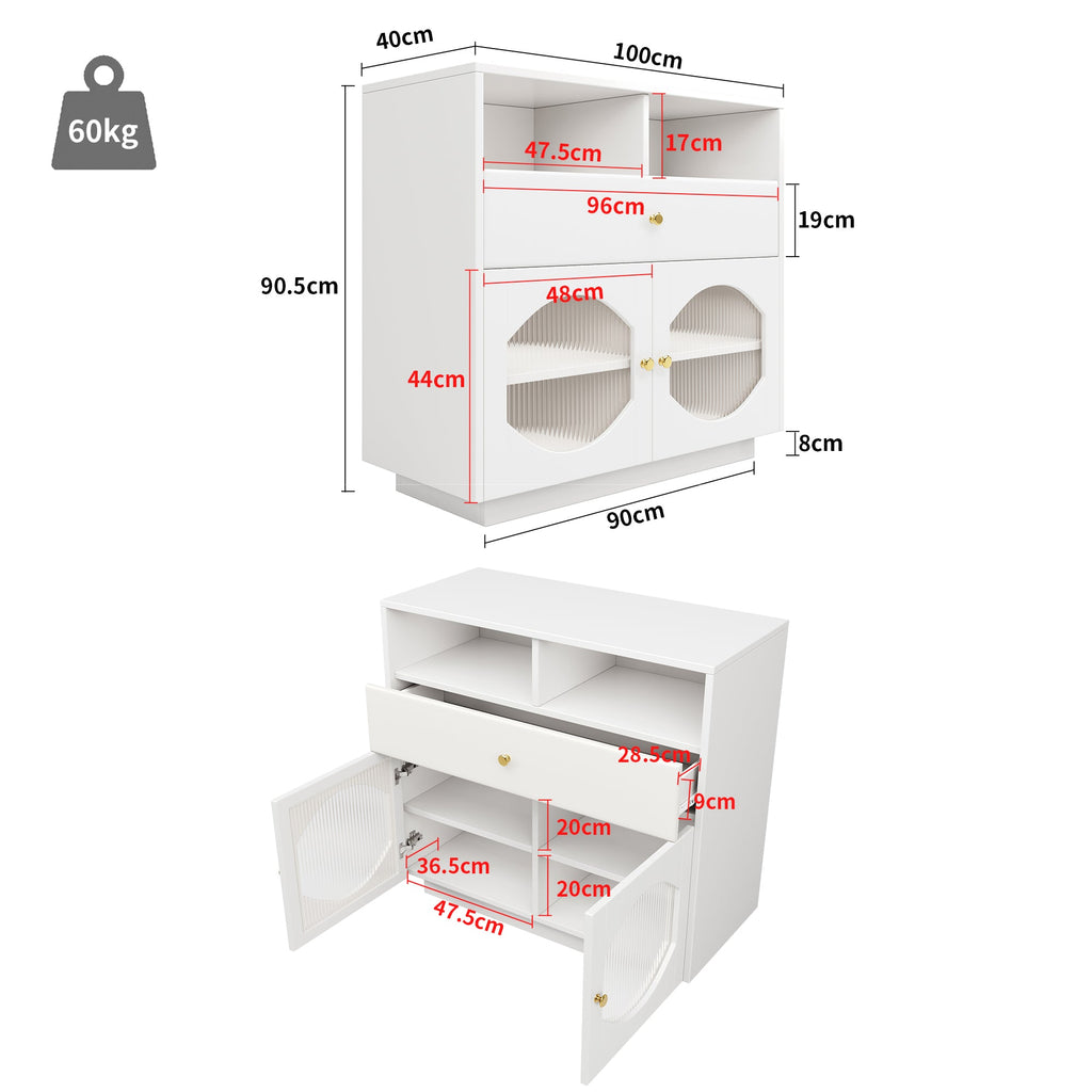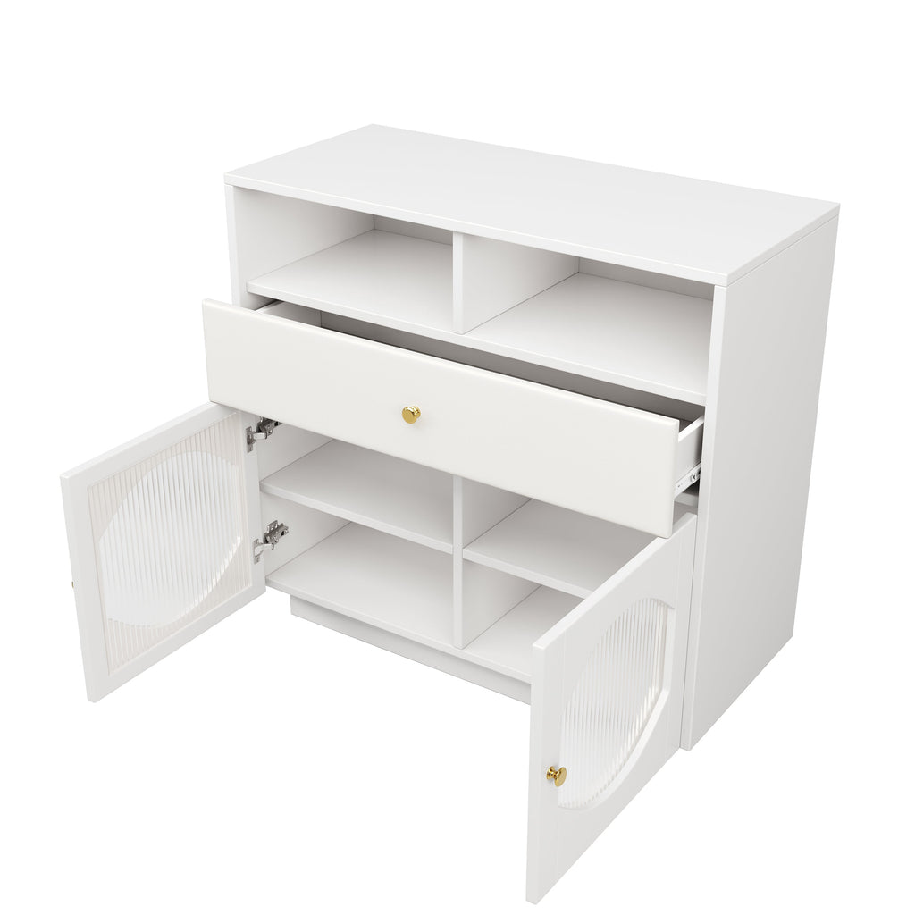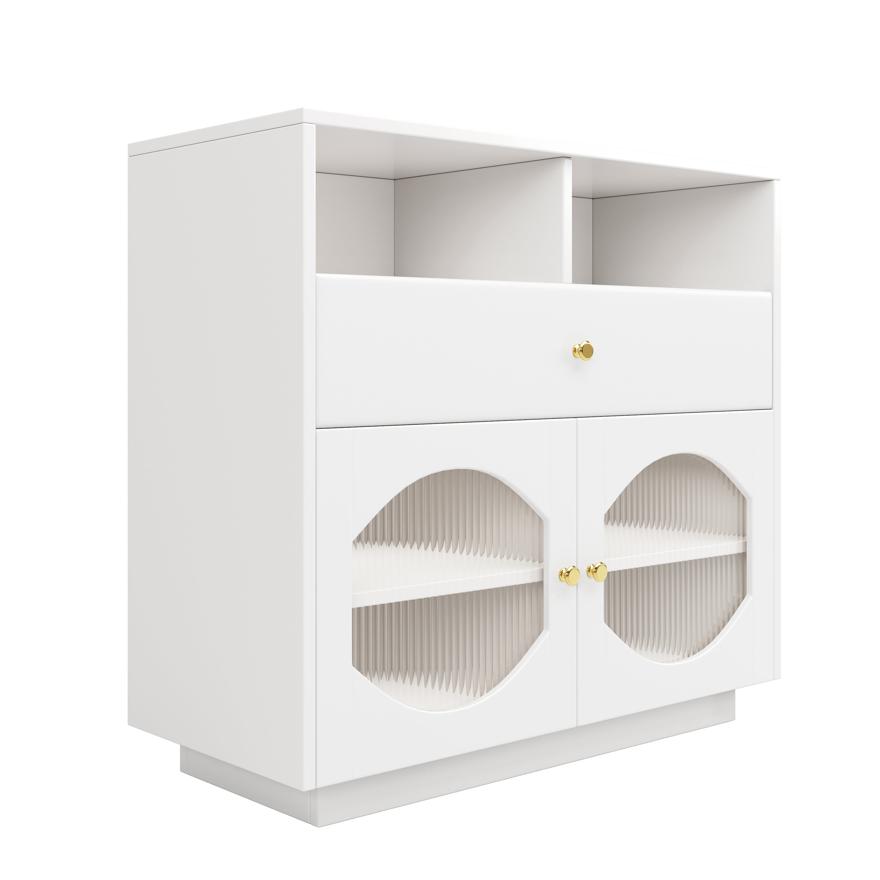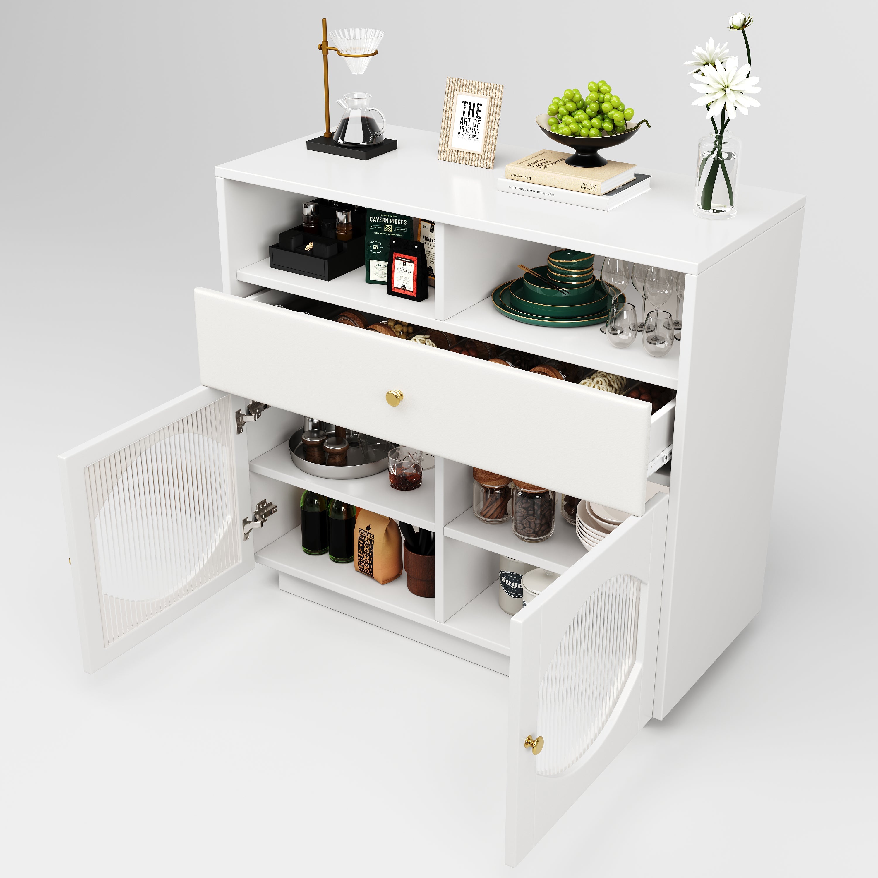 Kitchen Cabinet, Sideboard with Glass Doors & Storage, Modern White