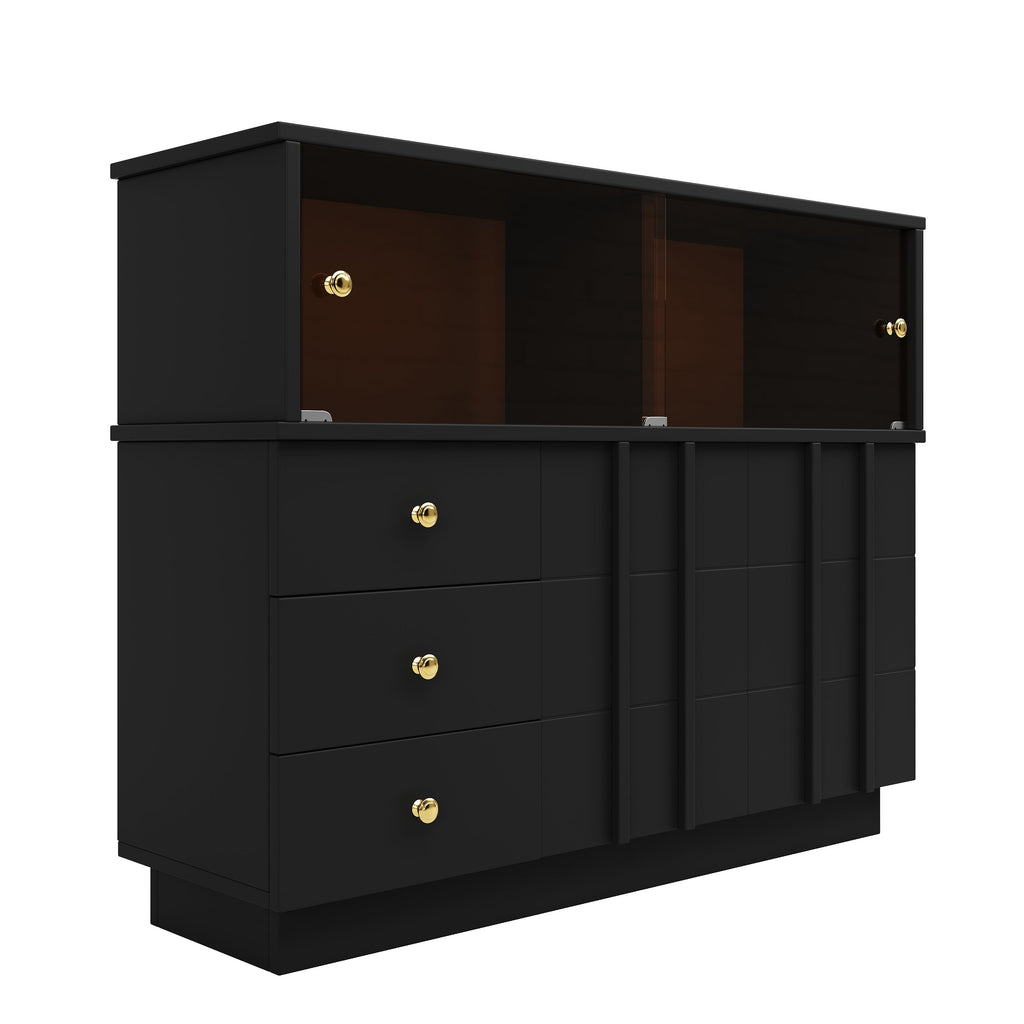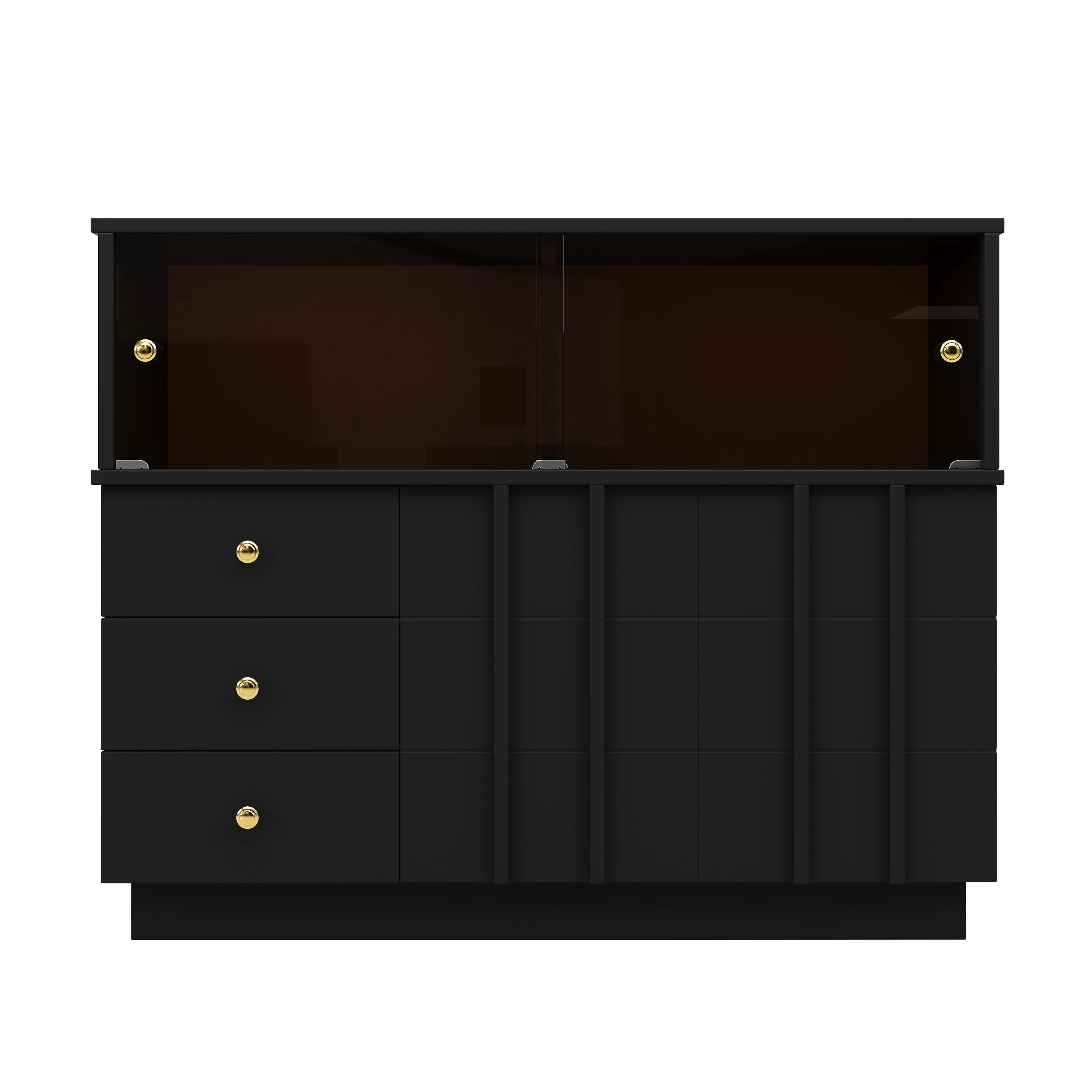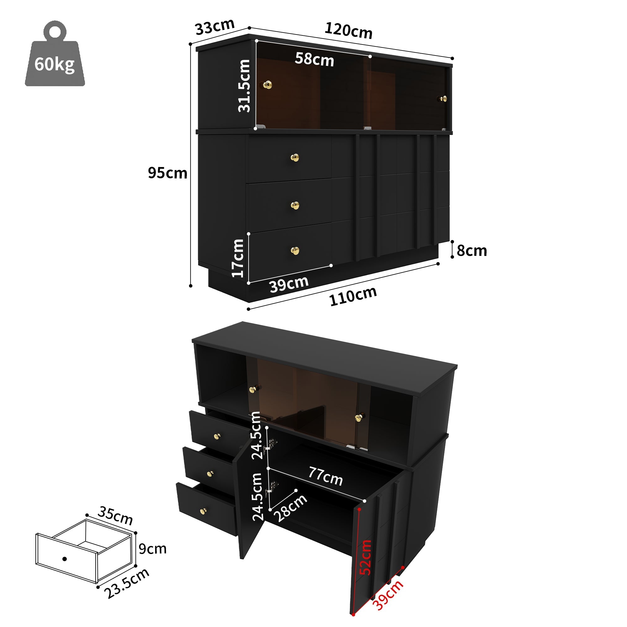 Kitchen Cabinet, Sideboard with Glass Doors & Storage, Smoky Glass Black