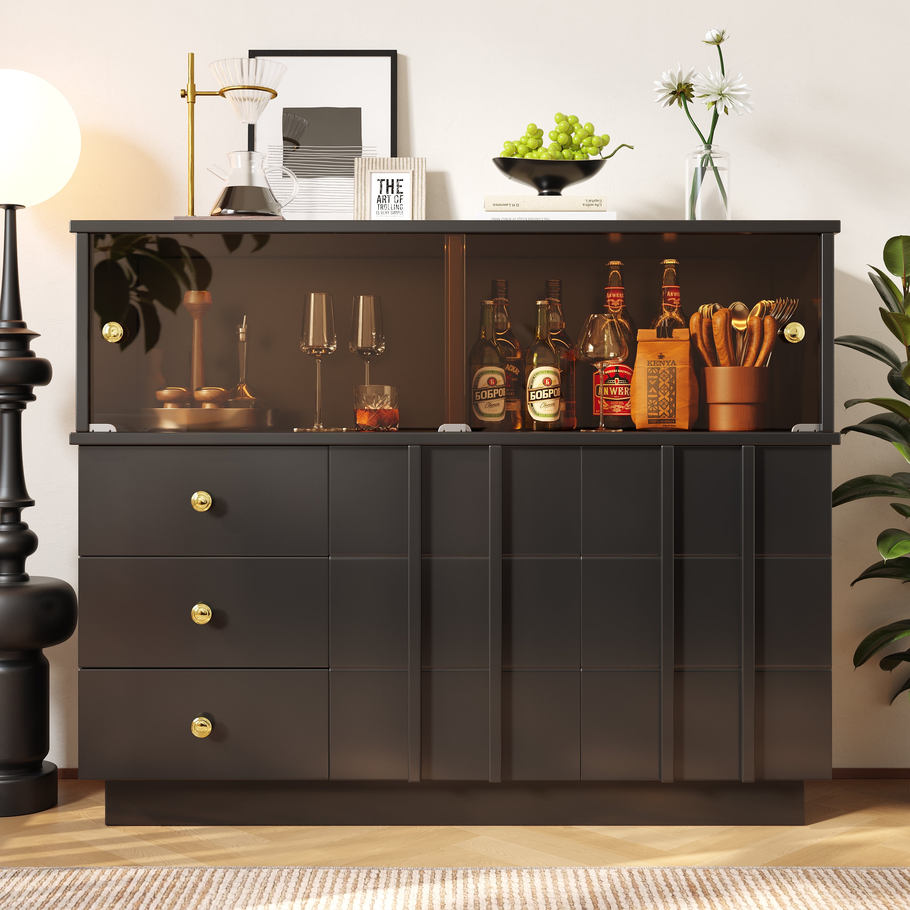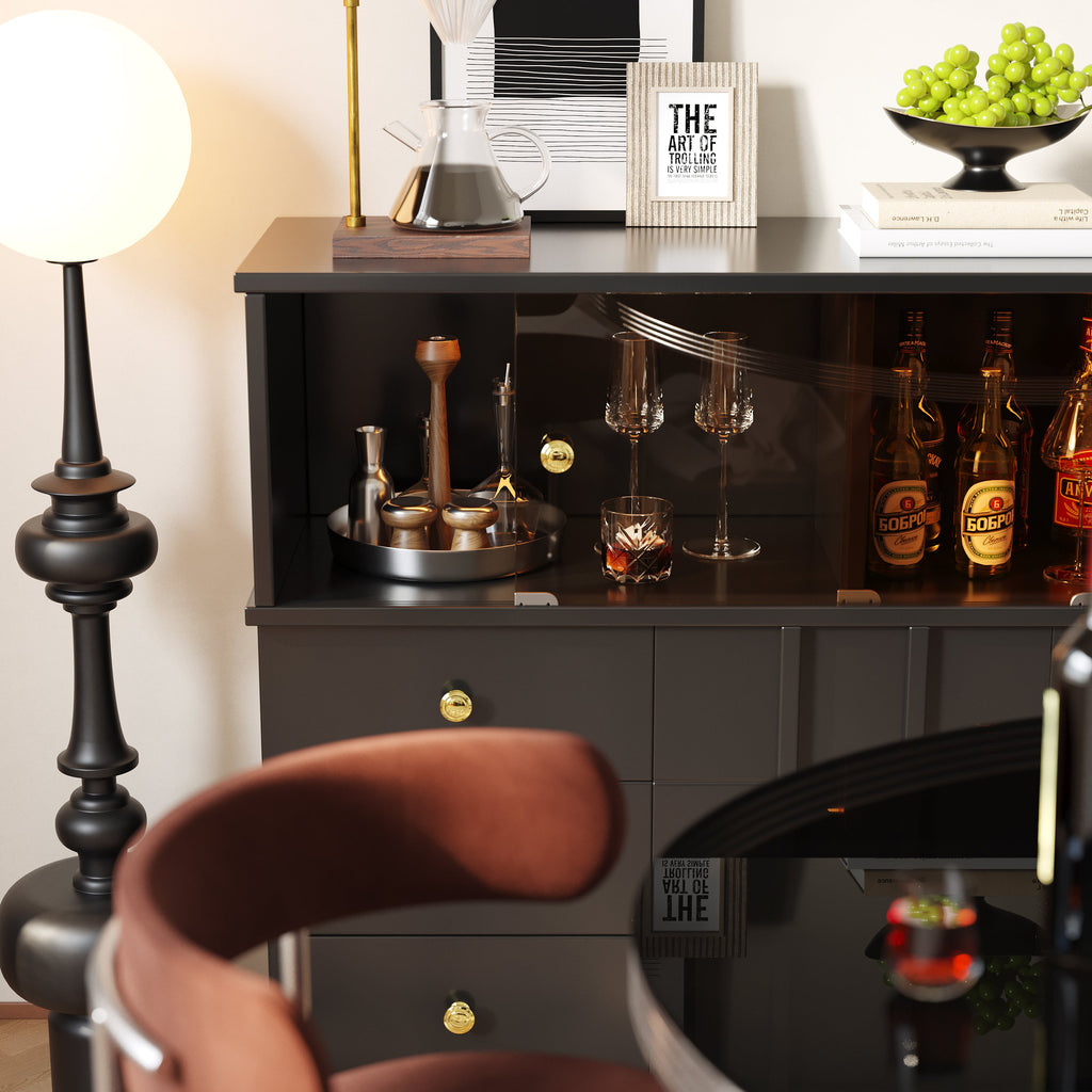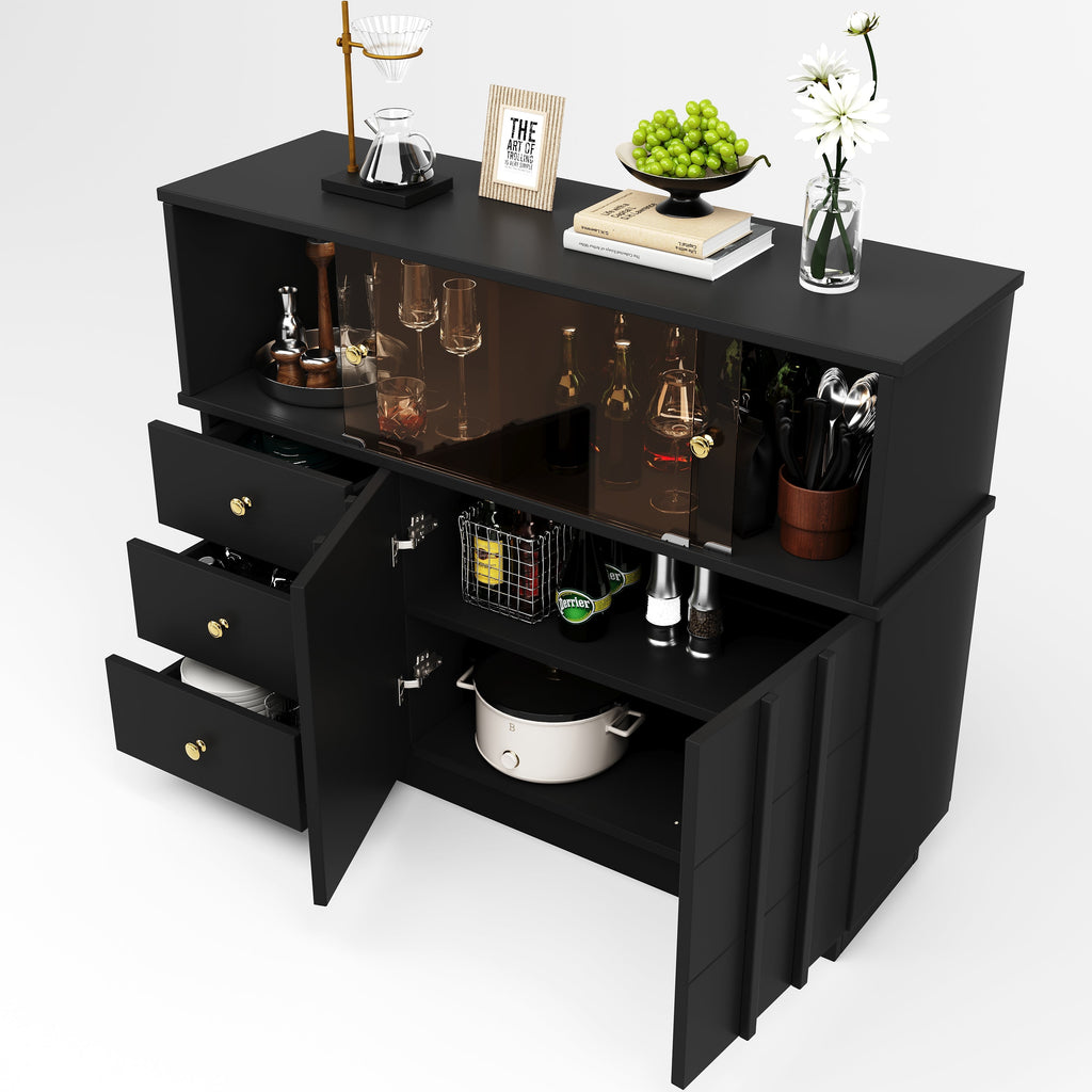 Kitchen Cabinet, Sideboard with Glass Doors & Storage, Smoky Glass Black