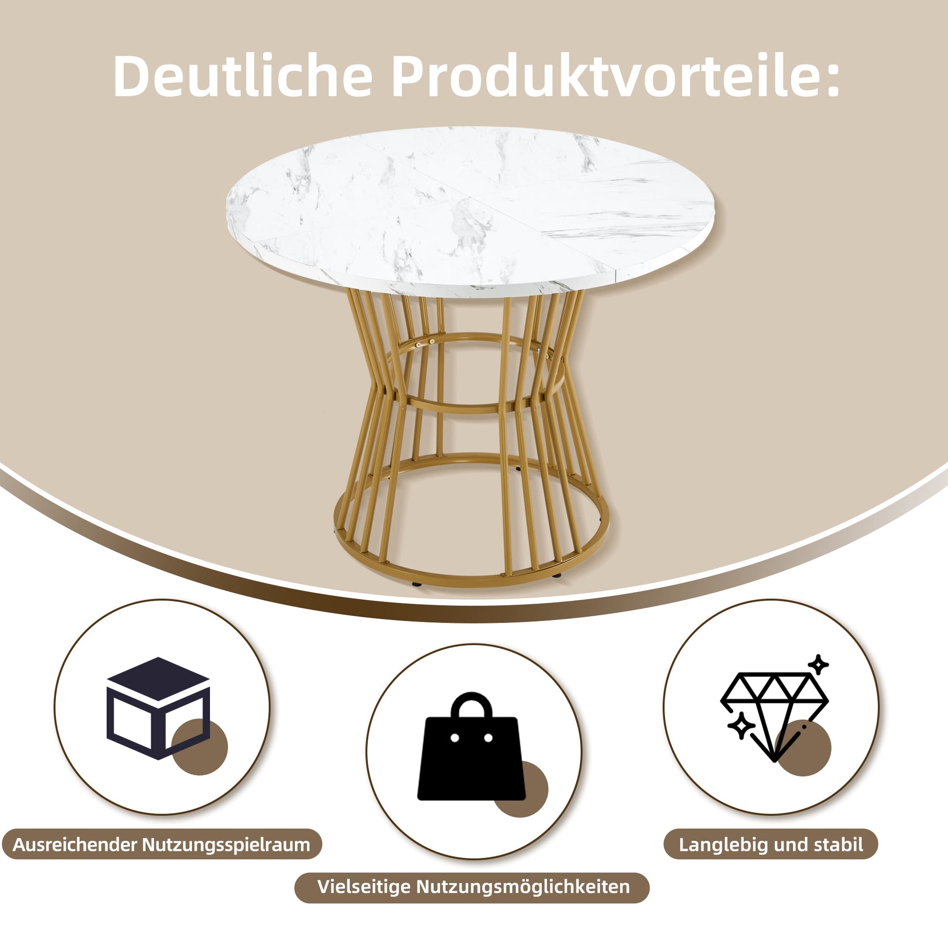 Kitchen Table Modern Marble Sturdy Metal Frame White/Gold