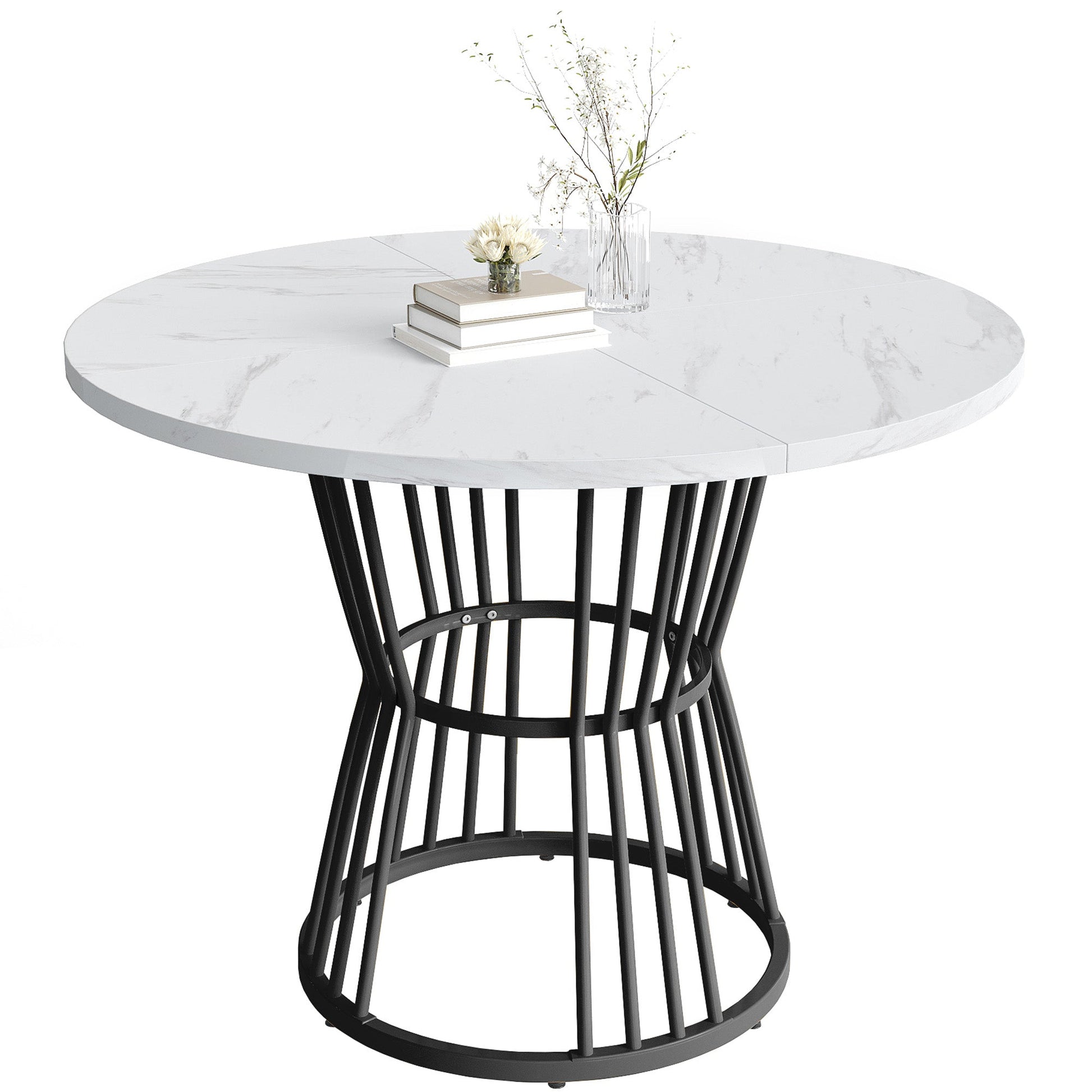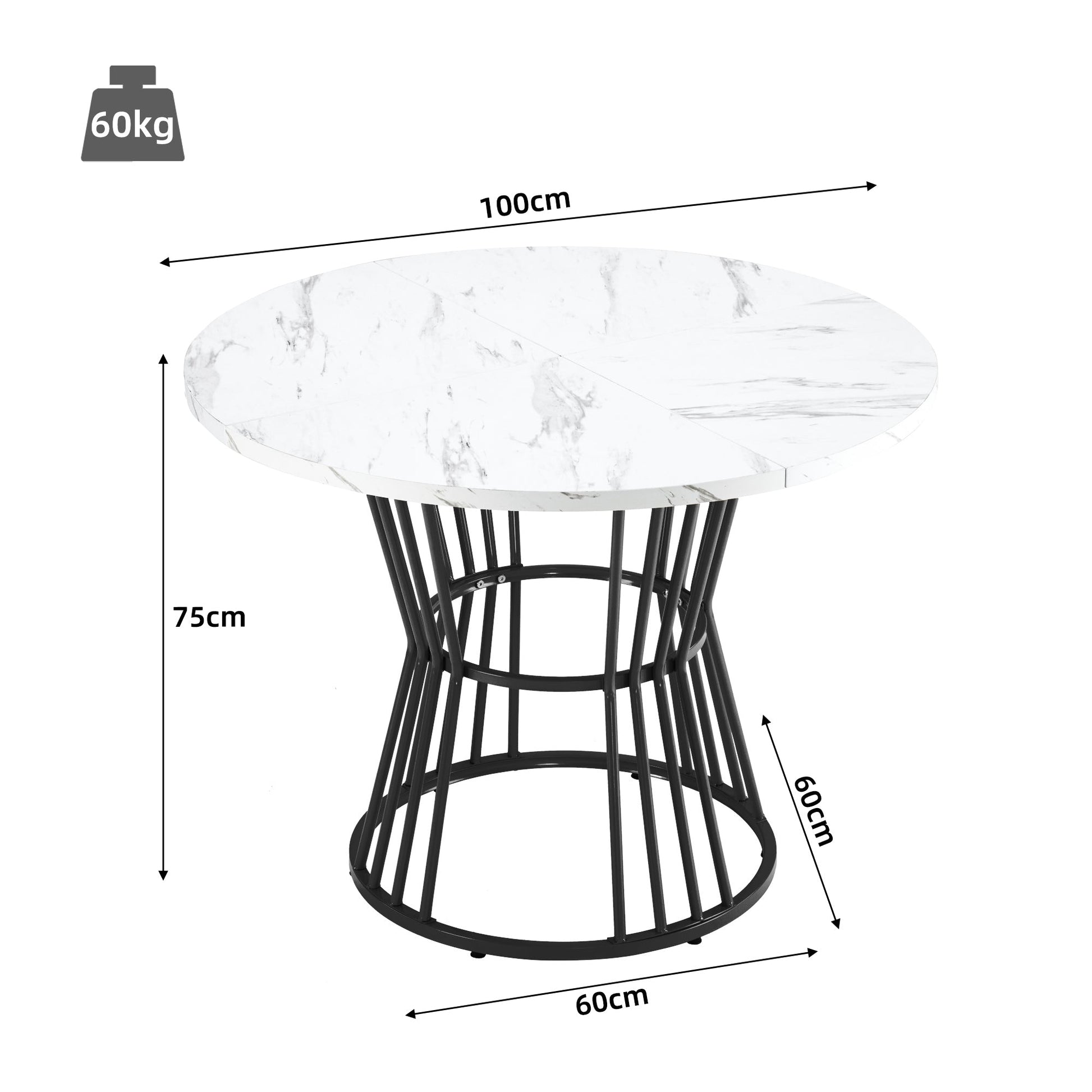Kitchen Table Modern Marble Top Sturdy Metal Frame - White/Black