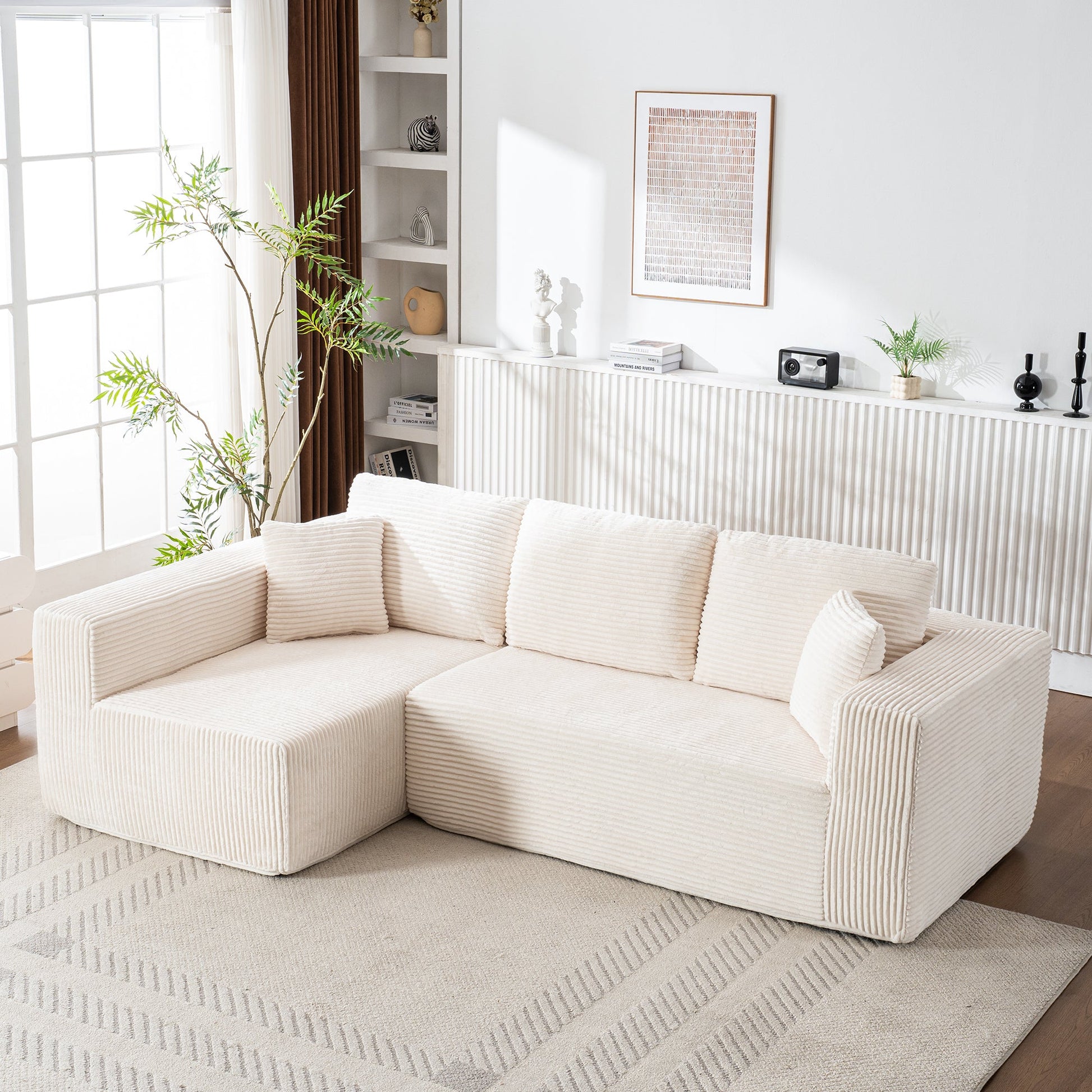 L-Shaped Cloud Sofa, Modern Modular Chaise Lounge, No Assembly, Core Fabric