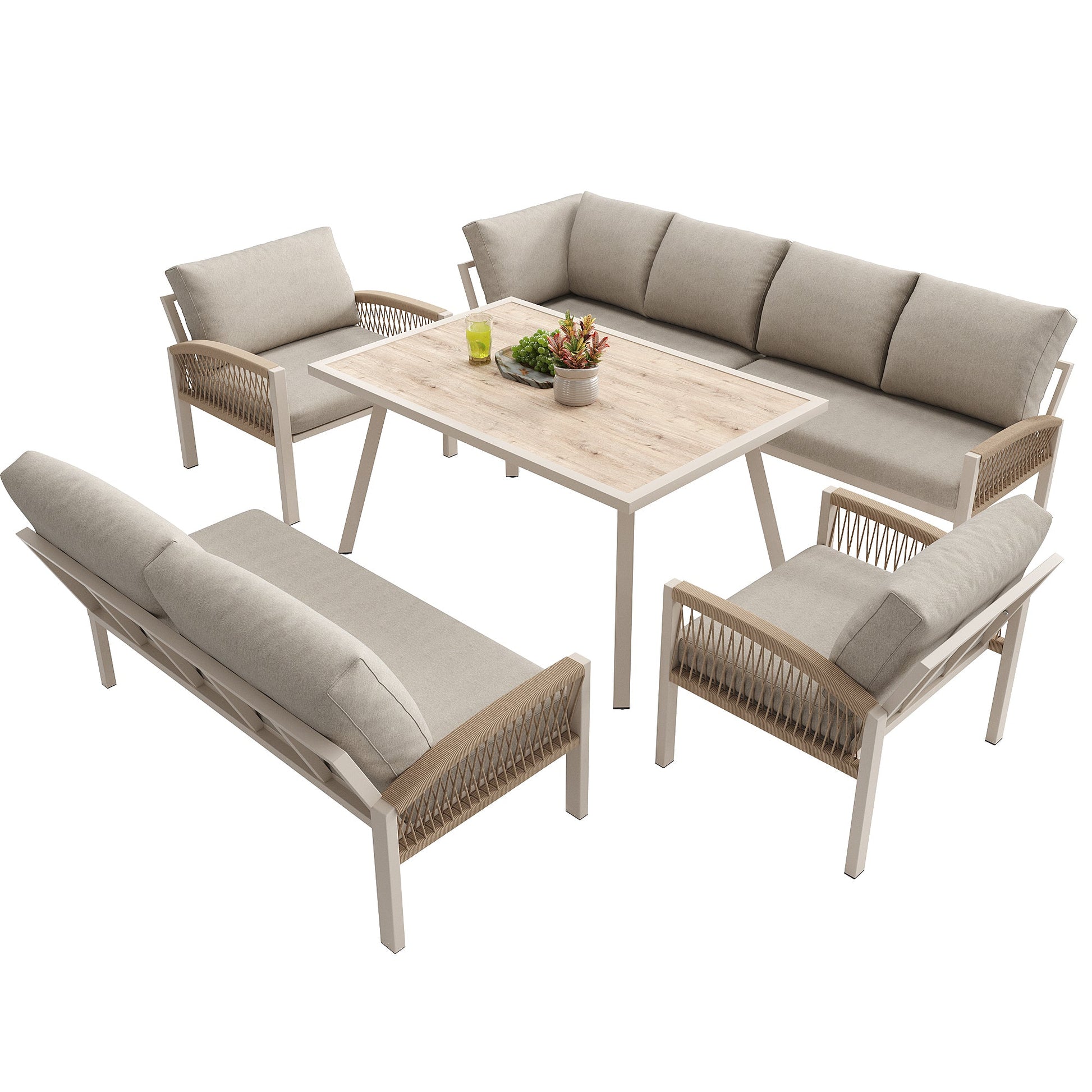 Package Contents: 1 Armchair Sofa, 1 Corner Sofa, 2 Single Sofas, 1 Table