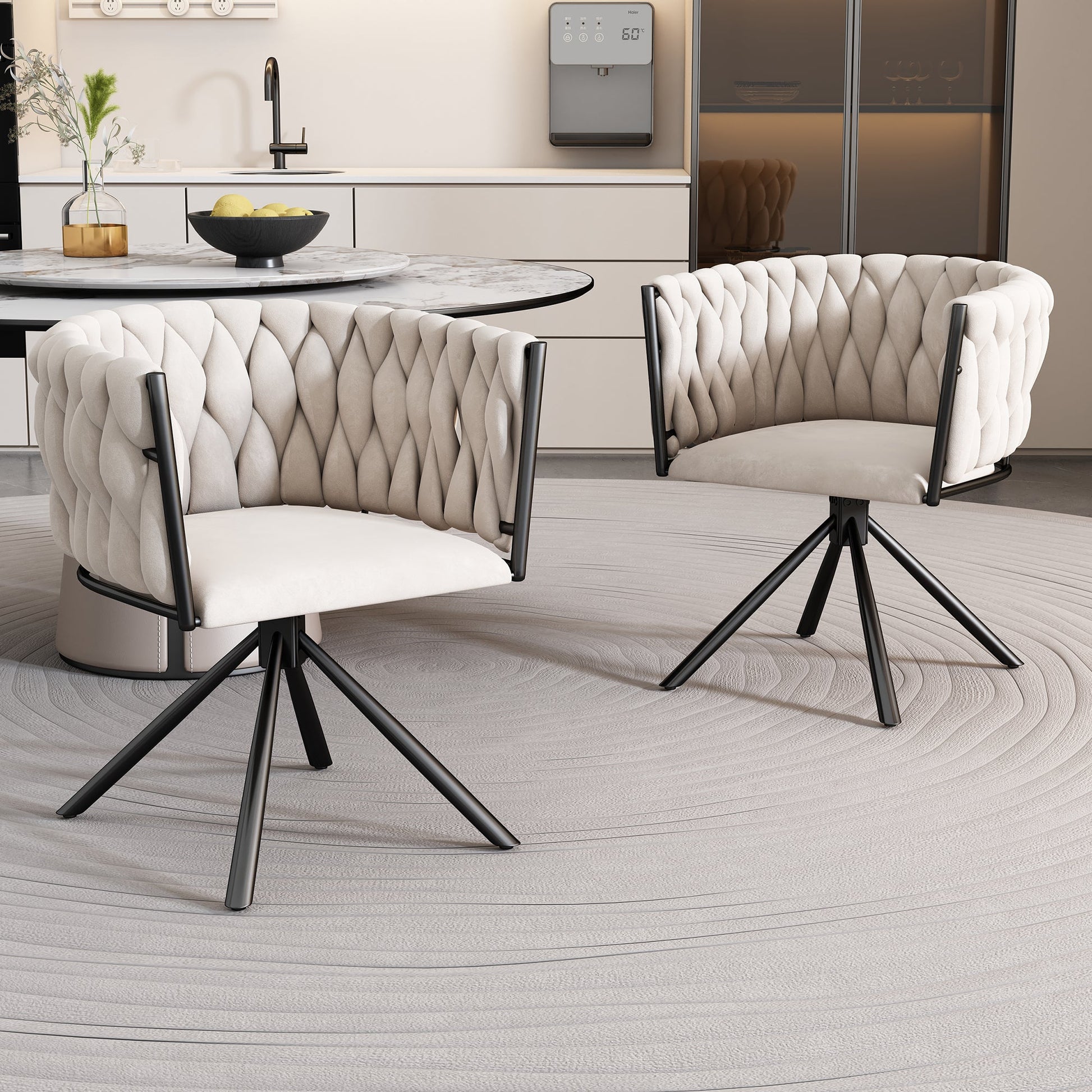 Leisure Swivel Chair with Four Metal Support Legs, Beige Velvet