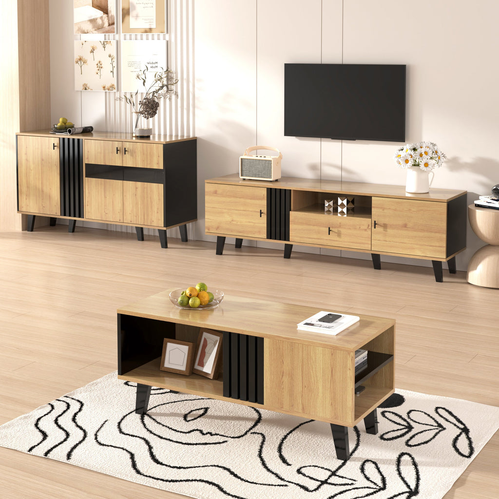 Living Room Furniture Set - Coffee Table, TV Cabinet & Sideboard, Modern, Wood & Black